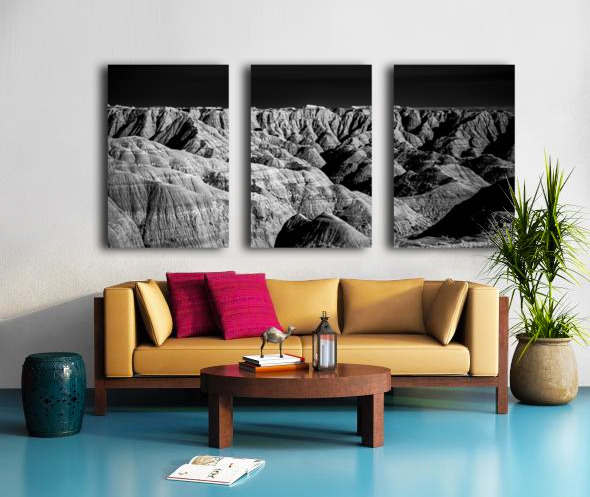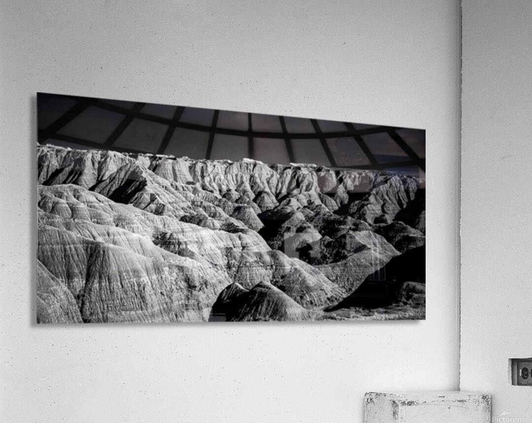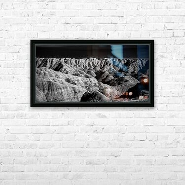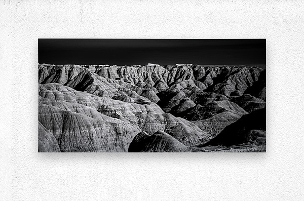 Embark on an unforgettable adventure as my wife and I journeyed through the captivating landscapes of the Badlands in South Dakota. Witness the breathtaking beauty of this rugged terrain where every shadow tells a story of mystery and intrigue. Step into a world where the shadows dance across the rugged earth revealing a landscape shrouded in enigma. The realm of sharply ridged hills and deep valleys is illuminated by a captivating play of light and shadow bringing texture and depth to every crevice. The horizon stretches endlessly beckoning the viewer to explore beyond the intricate patterns carved into the earth. In a black and white photograph that captures the essence of the lands ancient soul this artwork invites you to lose yourself in the Shadows of the Earth.