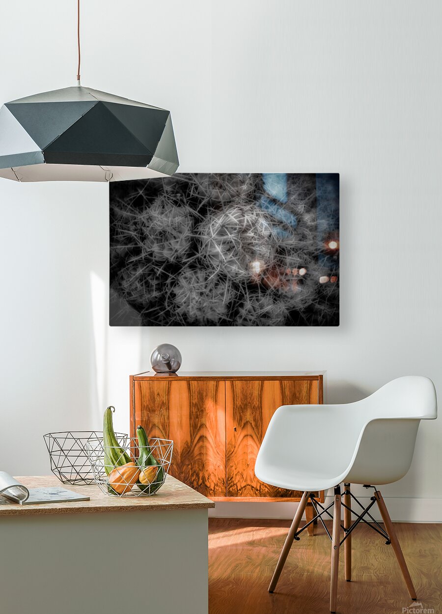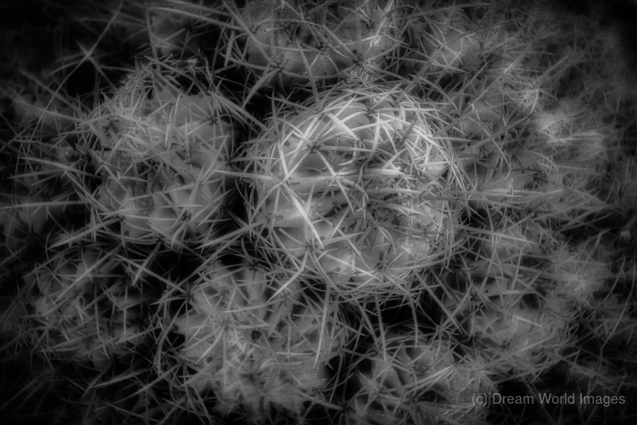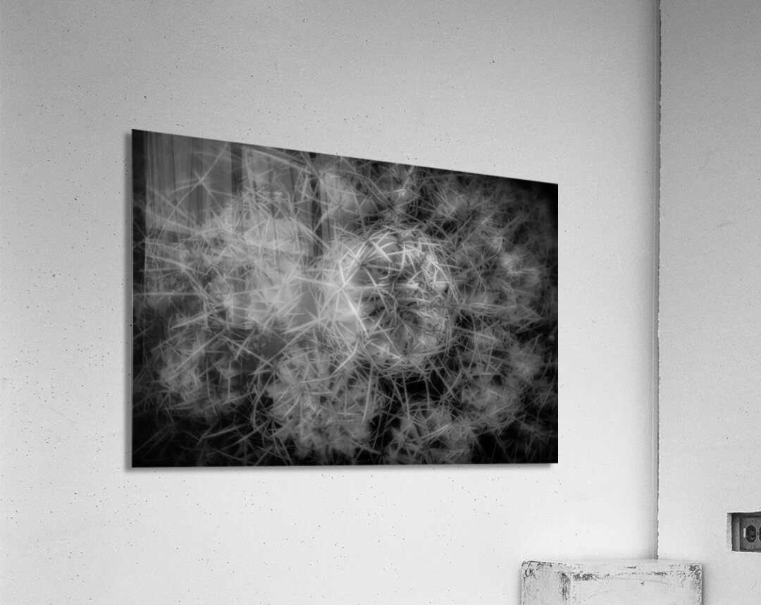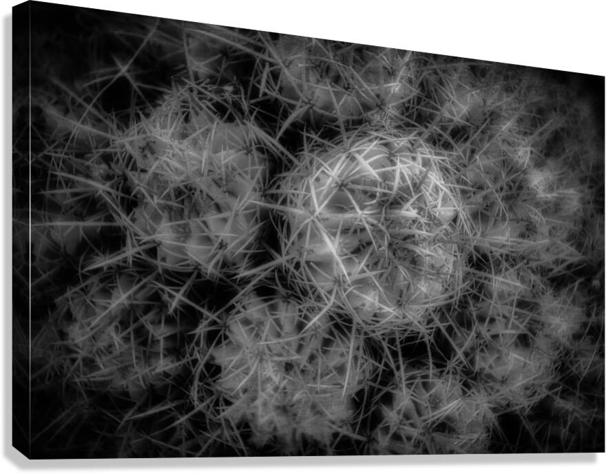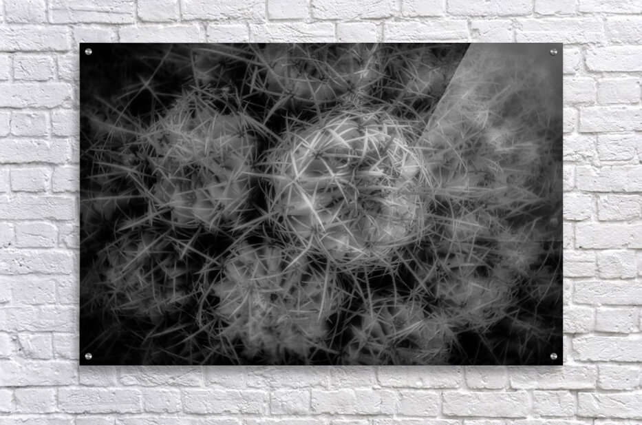 "Thorned Harmonics" emerges as a mesmerizing enigma woven from nature's own tapestry. In a monochromatic universe of light and shadow, this captivating photograph captures the intricate elegance and formidable presence of a cactus. The composition invites viewers to delve into an almost otherworldly landscape where spikes and thorns coalesce into a geometric symphony, each note resonating with complexity and precision. This image enthralls with its profound contrast, guiding the eye along an intricate labyrinth of dense textures and shadowy recesses. As the thorns ebb and flow across the canvas, they seem to whisper arcane secrets, their sharp silhouettes echoing an ancient rhythm that reverberates through realms unseen and usually ignored. The sheer intensity of this visual odyssey compels the observer to contemplate the delicate balance of form and void, chaos and order—a dance of nature's mystic harmonics. In this silent symphony, the interplay of light and shadow transforms a simple cactus into a transcendent emblem of resilience and enigmatic allure.