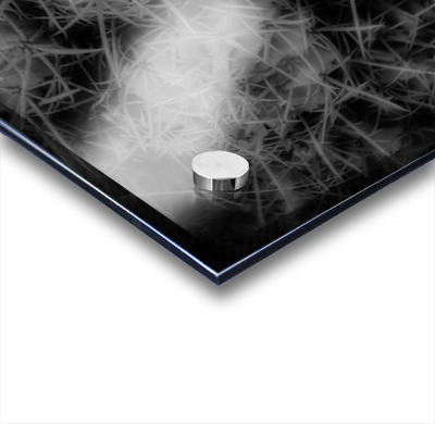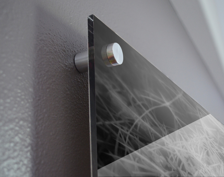 Impression sur acrylique avec entretoises ( cylindres métalliques )