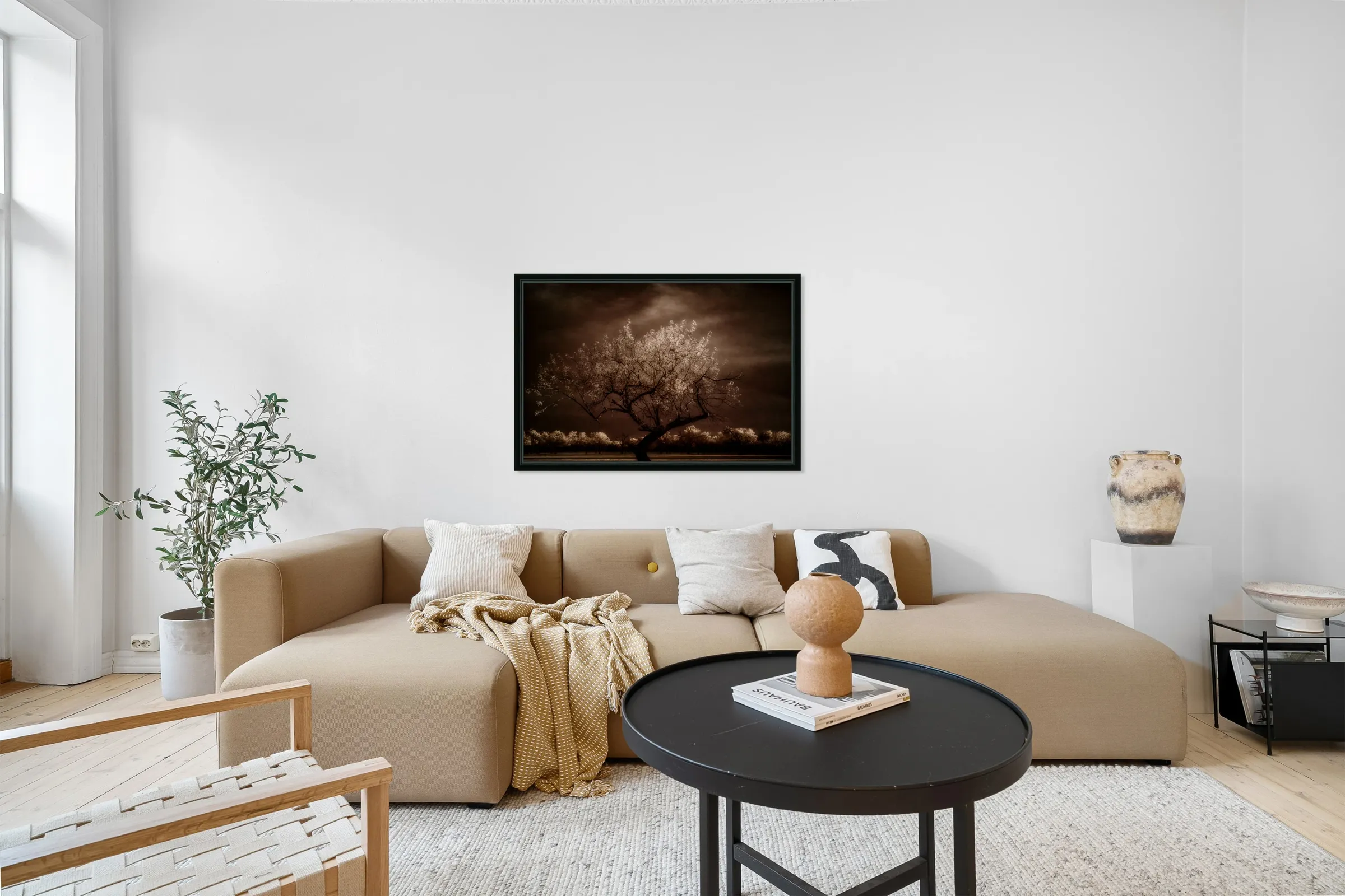 Imprimé jusqu’au bord et prêt à être accroché, avec un cadre flottant à l’arrière.