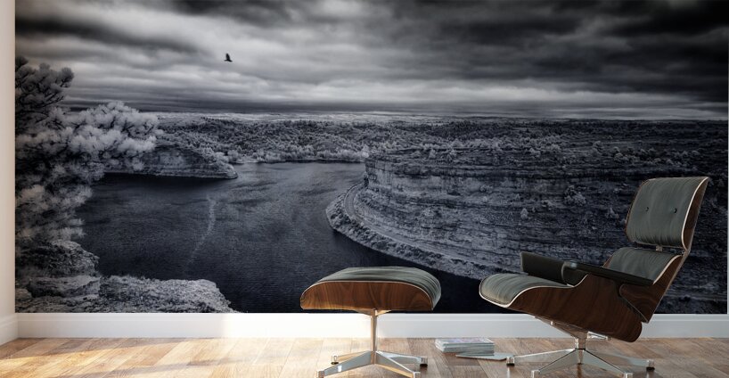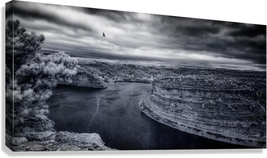 Venturing out from our cozy stay in Fort Laramie Wyoming my wife Cooper our beloved pup and I embarked on an exciting day trip to Guernsey State Park. Despite the chilly mid-May rain we were eager to explore the parks stunning landscapes and create lasting memories. As we arrived at Guernsey State Park the rain continued to fall steadily adding a sense of tranquility to the atmosphere. Undeterred by the weather we set out on a hike along the parks scenic trails with Cooper bounding ahead his tail wagging with excitement. Reaching an overlook we were greeted by breathtaking views of the parks rugged terrain and lush greenery. Despite the gray skies above the beauty of the landscape was undeniable and we couldnt resist capturing the moment with our cameras. Using infrared photography we snapped a series of images from the overlook each bathed in a soft blue cast that added a touch of mystique to the scene. The ethereal quality of the infrared images perfectly captured the otherworldly beauty of Guernsey State Park transforming the rainy day into a magical adventure. In addition to the infrared shots we also captured one image in visible light highlighting the natural colors and textures of the landscape. Each photograph in the series told a unique story of our rainy day adventure showcasing the raw beauty of Wyomings wilderness. As we returned to Fort Laramie our hearts were grateful for the opportunity to explore Guernsey State Park despite the less-than-ideal weather. It was a day filled with laughter exploration and the simple joy of being surrounded by natures splendor.