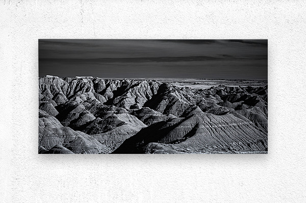 Embark on an unforgettable adventure as my wife and I journeyed through the captivating landscapes of the Badlands in South Dakota. Witness the breathtaking beauty of this rugged terrain where every shadow tells a story of mystery and intrigue. Step into a world where the shadows dance across the rugged earth revealing a landscape shrouded in enigma. The realm of sharply ridged hills and deep valleys is illuminated by a captivating play of light and shadow bringing texture and depth to every crevice. The horizon stretches endlessly beckoning the viewer to explore beyond the intricate patterns carved into the earth. In a black and white photograph that captures the essence of the lands ancient soul this artwork invites you to lose yourself in the Shadows of the Earth.