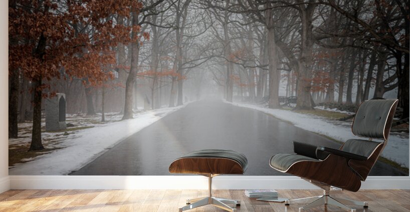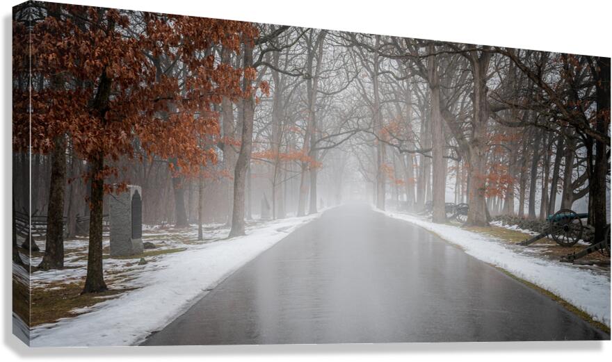 Where history whispers through winter mist Confederate Avenue stretches into memory. Persistent oak leaves cling to their branches their russet hues a subtle reminder of autumns passage while winter fog embraces the path where soldiers once marched. Natures quiet reverence perfectly captures the solemnity of this historic ground.