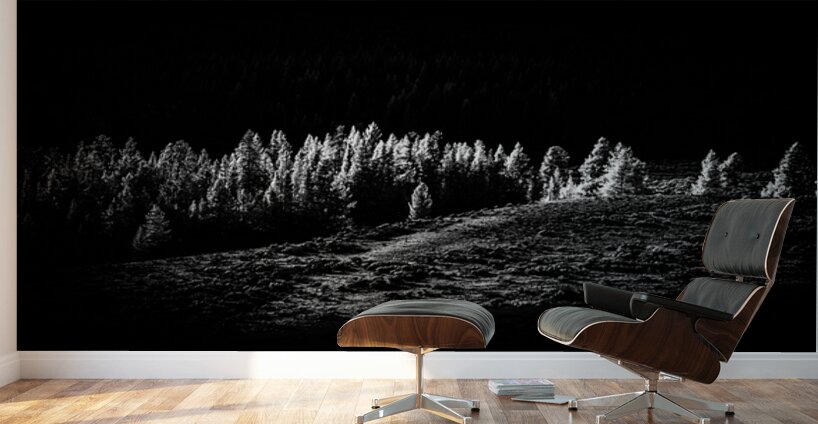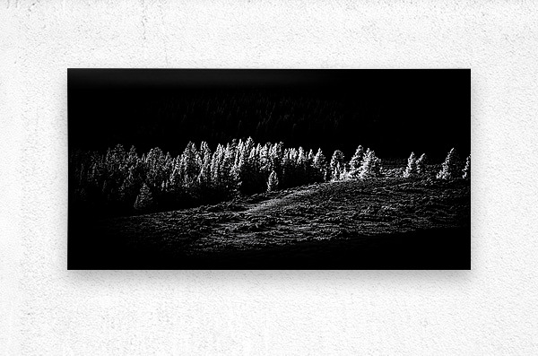 In the high country of Grand Teton National Park where light and shadow engage in their eternal dance I discovered this moment of pure dramatic contrast. Through my lens a line of evergreens stands illuminated against the darkness like natures own chorus line their forms glowing with an inner radiance while shadow claims the sage-covered slopes below. The scene unfolds like a masterful stage production - a spotlight from the setting sun catches just the ridge of trees transforming them into luminous performers against natures dark velvet curtain. Each pine needle seems to capture and hold the light creating natures own constellation against the deepening mountain twilight. Some say the most powerful moments in photography are found in these edges where light meets shadow where brightness and darkness negotiate their boundaries. On this evening in the Tetons as the last rays of sun picked out this single line of trees while leaving the rest of the landscape in dramatic shadow I witnessed that truth. This isnt just a mountain scene - its natures own chiaroscuro where every illuminated branch and shadowed slope plays its part in the eternal dance between light and dark.