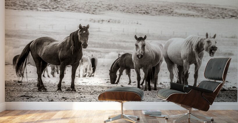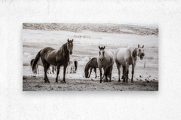 You know exactly what I mean when you look at this group - theres always that one friend who cant take a serious photo! While the rest of the band stands dignified and composed for their portrait the horse on the right just has to make a face. Its like trying to get a family photo where everyone looks normal except this is happening in the wild Wyoming landscape with no photographer directing the scene. These magnificent horses at Wind River Wild Horse Sanctuary remind us that personality shines through in every species. Even in the wild friendships have their dynamics and apparently every herd has its comedian.