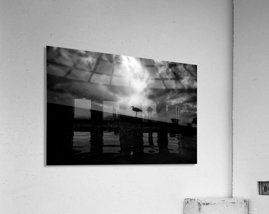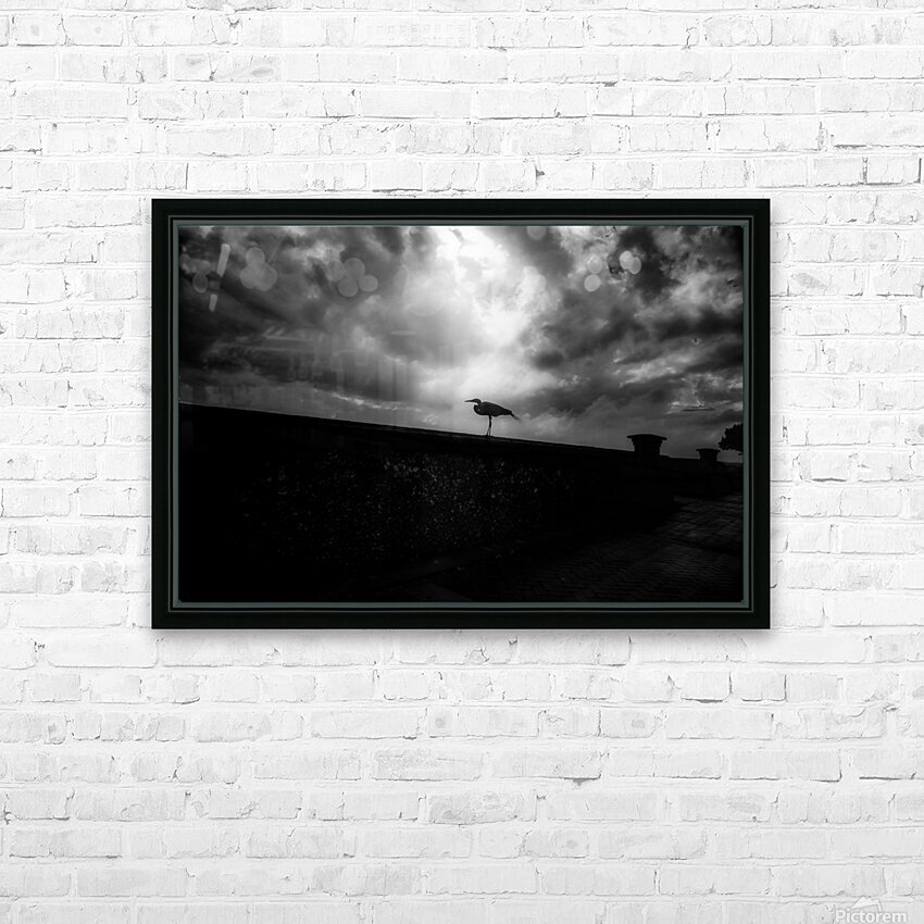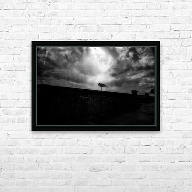 Pour obtenir "Rainy Day Stroll: Capturing Serenity with a Silhouetted Bird in " dans une impression encadrée.
