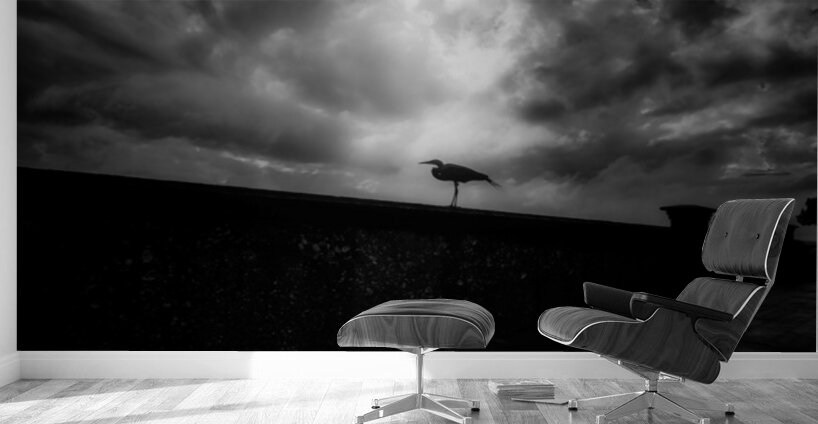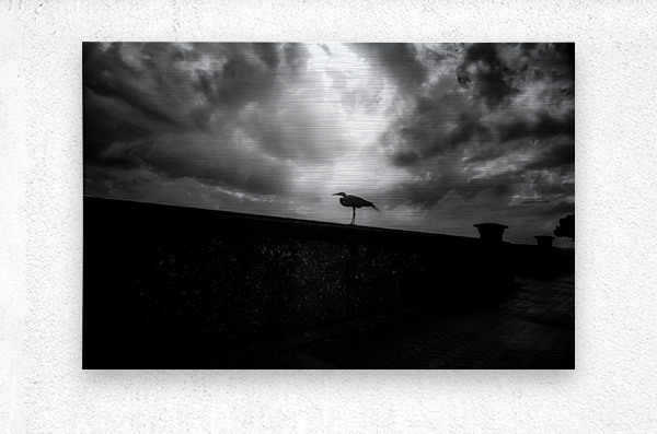 On a chilly and rainy day in Saint Marys Georgia a magical moment unfolded as my wife and I decided to explore the parks despite the cold weather. The raindrops created a soothing melody on our umbrellas as we wandered through the park discovering the unique beauty of this coastal town. Amidst the moody sky I stumbled upon a captivating scene—a lone bird standing on a wall silhouetted against the backdrop of the rainy day. The bird seemingly undisturbed by the weather held its ground as I moved around to capture the moment in a striking infrared image. The infrared lens transformed the scene into a timeless masterpiece. The bird standing tall and proud became a dark silhouette against the atmospheric and moody sky. The raindrops added an extra layer of serenity to the image creating a visual story of resilience and tranquility. This feathered friend allowed me to move around granting me the opportunity to capture the essence of the moment from different angles. The resulting photograph became a testament to the quiet beauty that can be found even on a cold and rainy day. Our rainy day exploration in Saint Marys Georgia became a memorable adventure filled with unexpected wonders. This silhouetted bird frozen in time against the moody sky symbolized the enduring spirit of nature in the face of changing weather.
