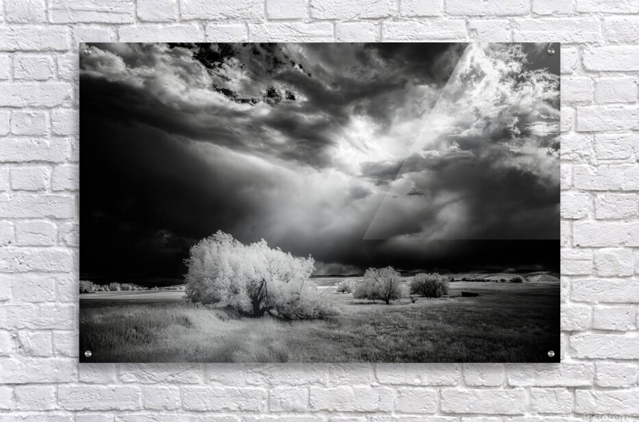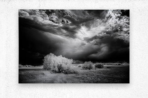 Sometimes nature puts on a show that humbles every photographer who witnesses it. This moment in Wyoming felt like standing in a cathedral where the ceiling had been replaced by storm clouds and divine light. The infrared treatment transforms those luminous sagebrush into ghostly sentinels while dramatic rays of sunlight pierce through the tempest above. Its the kind of scene that makes you believe in something bigger than yourself - where the raw power of prairie storms meets the quiet resilience of desert plants that have weathered countless such displays. Standing here you realize youre not just taking a photograph youre documenting a conversation between earth and sky.