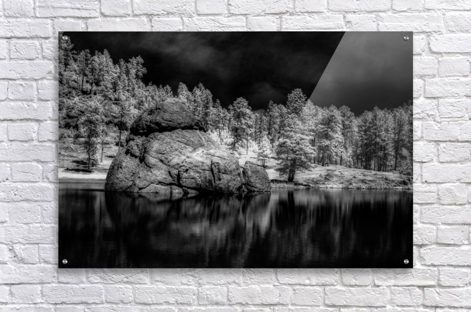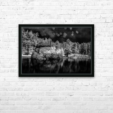 On a captivating afternoon, I embarked on an expedition to Sylvan Lake, nestled within the serene embrace of Custer State Park, South Dakota. Armed with my camera, I ventured to immortalize this natural wonder's enigmatic allure. Amidst the tranquil waters of Sylvan Lake, I encountered a spectacle that captured my gaze: a colossal rock protruding majestically from the depths below. Through the lens of my camera, bathed in true black and white invisible light, the scene took on an ethereal quality, shrouded in mystery and intrigue. The monochrome palette lent an air of timeless elegance to the landscape, accentuating every contour and crevice of the imposing rock formation. Against the lake's still surface, the rock stood as a silent sentinel, a testament to the enduring power of nature's handiwork. As I captured the scene with a click of my camera, I was awestruck by the stark beauty that unfolded before me. The infrared imagery revealed a world unseen to the naked eye, a realm of subtle contrasts and hidden depths waiting to be explored. In that fleeting moment, amidst the quietude of Sylvan Lake, I felt a profound sense of connection to the natural world. The monochrome marvel of the rock, bathed in invisible light, served as a poignant reminder of the timeless beauty that surrounds us, waiting to be discovered and cherished.