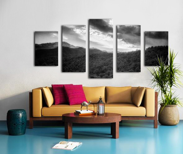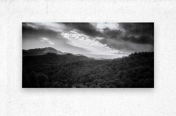 Step into a breathtaking world where the shadows dance along the slopes of towering peaks, showcasing the stunning beauty of nature. The monochromatic landscape captures the essence of tranquility and serenity, drawing the viewer into a world of pure artistry. Every detail is meticulously highlighted in stark contrast, creating a sense of depth and dimension that genuinely brings the artwork to life. The dynamic sky adds a touch of mystery and drama to the scene, with clouds swirling ominously above the majestic mountains. The dense forest below beckons you to explore its hidden depths, inviting you to uncover the secrets that lie within its ancient trees. This stunning artwork is a testament to the power and majesty of the natural world, a glimpse into a realm where light and shadow play an eternal game of hide and seek. With its captivating beauty and undeniable allure, this piece is sure to captivate and inspire all who gaze upon it.