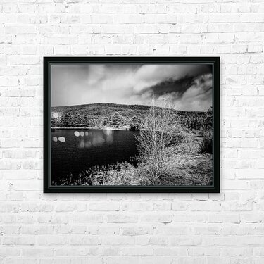 Step into a world of serene beauty with "Majestic Tranquility: Sprague Lake Serenity." This captivating monochromatic photograph captures a tranquil landscape that will enchant and inspire. As you gaze upon the scene, you'll find yourself surrounded by lush greenery and a majestic tree stretching towards the sky. The calm body of water reflects the beauty of the surrounding landscape, creating a sense of peace and harmony. Above, the dramatic sky adds to the enchantment of the scene, hinting at the ever-changing nature of the world around us. With its expert use of light and shadow, this artwork draws you into a mystical and enigmatic realm, inviting you to contemplate the wonders of the natural world. So come along and experience the majesty of Sprague Lake Serenity. Let the tranquility of this captivating artwork fill your heart and soul with wonder and awe.