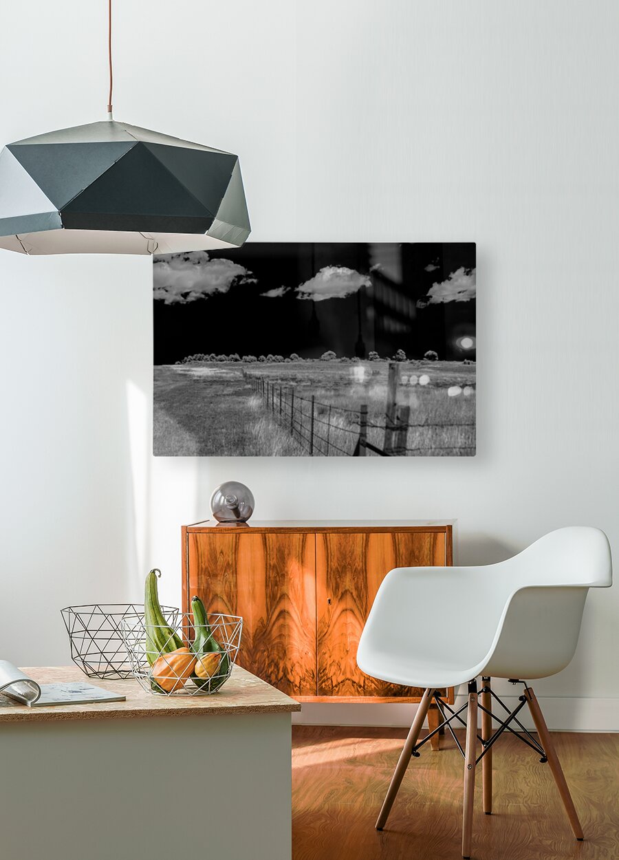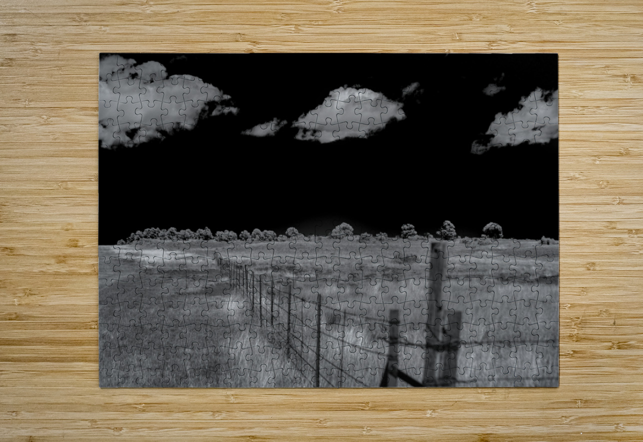 Fence of Stark Horizons is a captivating black and white photograph that plunges the viewer into a world of dramatic contrasts and boundless mystery.