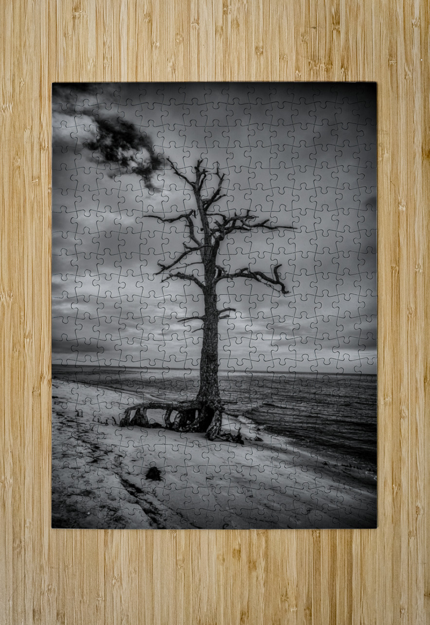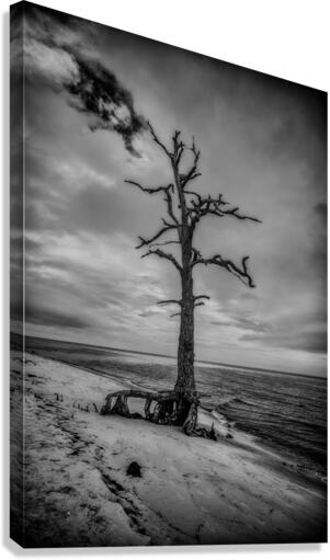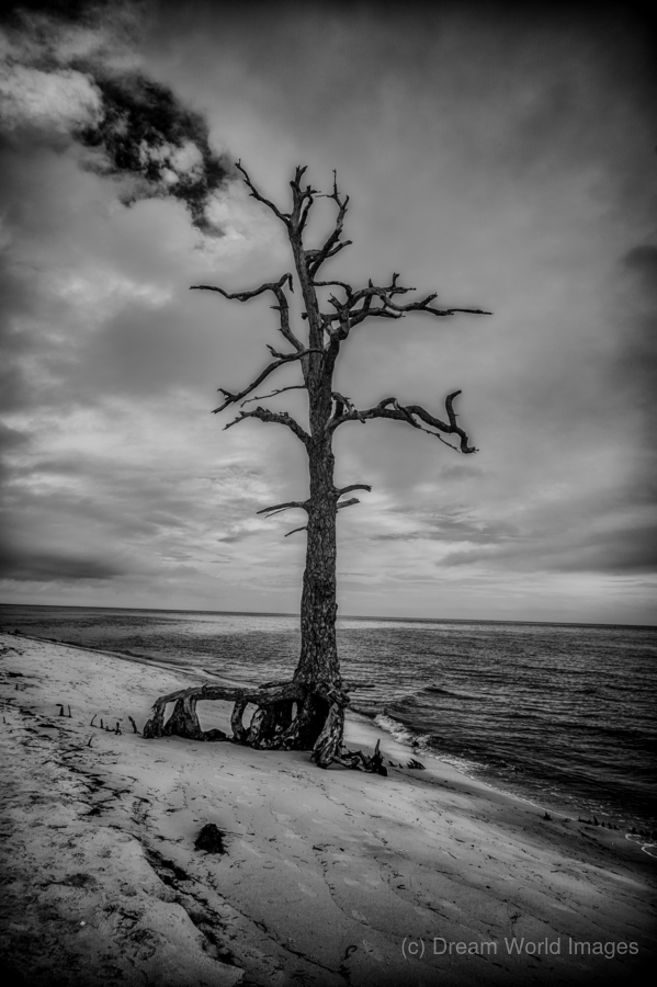 Another ethereal guardian emerges from Florida's coastal landscape, captured through the mystical lens of infrared photography. At Bald Point State Park, this solitary tree stands as nature's watchful presence, its form transformed by invisible light into a dreamlike vision. The surreal interpretation reveals the quiet dialogue between sea and shore, where ordinary coastal elements become extraordinary through the dance of light and shadow.