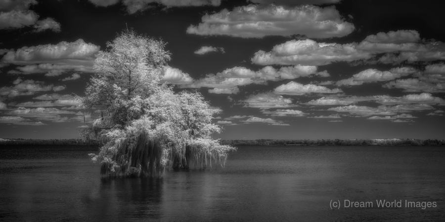 On a journey through the natural wonders of Santee State Park in South Carolina, my camera lens captured a breathtaking moment that epitomizes the park's serene beauty. Out on the lake, I stumbled upon two majestic cypress trees, standing tall against the backdrop of a picturesque sky filled with white puffy clouds. Choosing to immortalize this scene in black-and-white infrared photography added a touch of timeless elegance to the already captivating landscape. The contrasting tones emphasized the unique shapes of the cypress trees. They created a mesmerizing effect on the water's surface, enhancing the overall allure of the natural oasis. As the infrared lens transformed the image, the white puffy clouds in the expansive sky seemed to stretch endlessly into the distance. The scene became a visual symphony of contrasts, with the dark silhouettes of the cypress trees standing in stark relief against the ethereal sky. With its hidden gems and tranquil destinations, Santee State Park proved to be a haven for outdoor and photography enthusiasts alike. The cypress oasis, captured in black and white infrared, is a testament to the park's natural beauty and the unexpected treasures waiting to be discovered in the heart of South Carolina. Whether seeking a peaceful retreat or a photographer's paradise, Santee State Park offers a timeless escape into the beauty of the Southern wilderness.