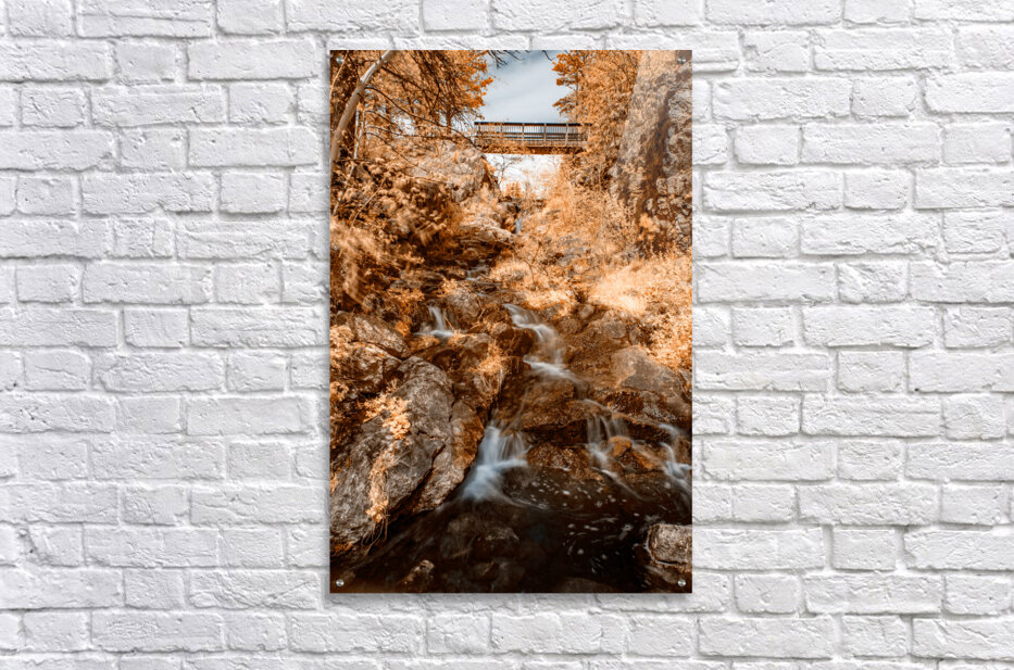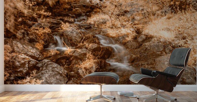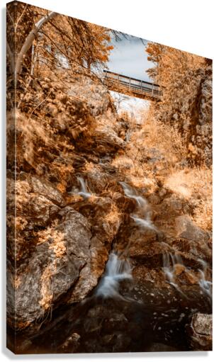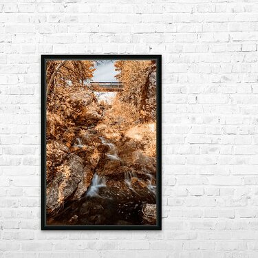 In the hidden corners of Custer State Park, where Bismarck Falls tumbles through ancient granite, I discovered this moment when water and light conspire to create magic. Through infrared's enchanted eye, familiar forest colors transform into warm amber tones, while flowing water remains a pure, ethereal white against the golden cascade. The falls dance down their rocky stage in delicate veils, each drop catching light like suspended stars. Around them, foliage glows in supernatural copper and bronze, as if autumn decided to paint with metallic hues. The infrared technique reveals the unseen energy of this place, transforming a simple waterfall into nature's own light show. Some say water holds memories of every rock it's touched, every season it's witnessed. On this day at Bismarck Falls, as my camera captured light beyond human vision, I witnessed that truth. This isn't just a waterfall - it's nature's own storyteller, where every cascade and eddy contributes to a tale written in light and motion, deep in the heart of the Black Hills.