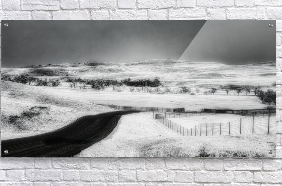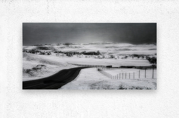 Embarking on a scenic drive along the wildlife loop at Custer State Park in South Dakota, I found myself entranced by the timeless beauty of the landscape unfolding before me. Little did I know that my journey would lead me to capture a photograph that would encapsulate the vastness and tranquility of the American wilderness. The image revealed a sweeping landscape captured in striking black and white. A paved road meandered through the center of the scene, its strong visual curve drawing the eye into the distance, where it disappeared into the vast expanse of the horizon. Flanked by wire fencing, the road traversed through gentle, rolling hills, each receding into a hazy background, suggesting an endless, open space waiting to be explored. Sparse trees dotted the landscape, their silhouettes breaking the monotony of the grass-covered terrain and adding depth to the composition. The entire scene was enveloped in a palette of contrasting tones, highlighting the textures and the interplay of light and shadow that are characteristic of monochrome photography. As I beheld the serene landscape before me, I couldn't help but feel a sense of awe and wonder at the vastness and beauty of the natural world. The absence of color drew attention to the timeless quality of the rural setting, inviting contemplation and reflection on the infinite expanse of the wilderness. Capturing the essence of the landscape in that fleeting moment, I knew that the memory of this journey through Custer's wildlife loop would stay with me forever, a testament to the enduring allure and tranquility of the American West.