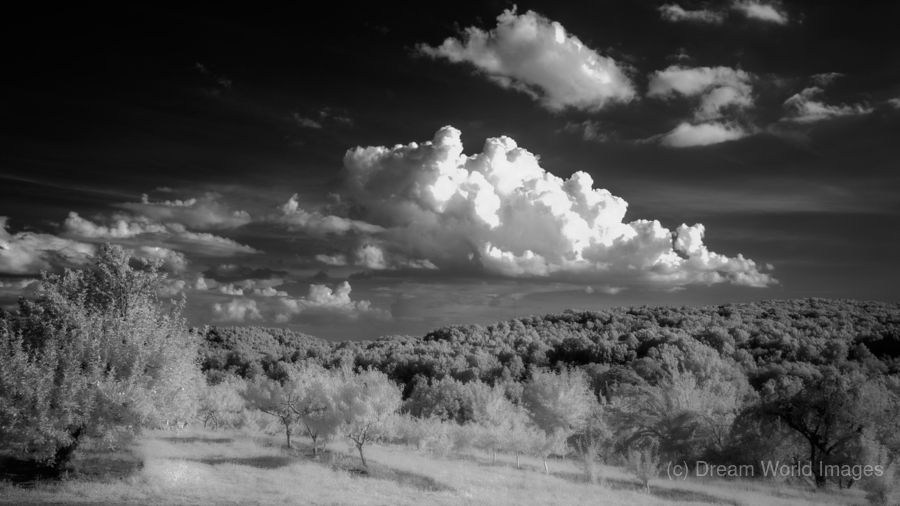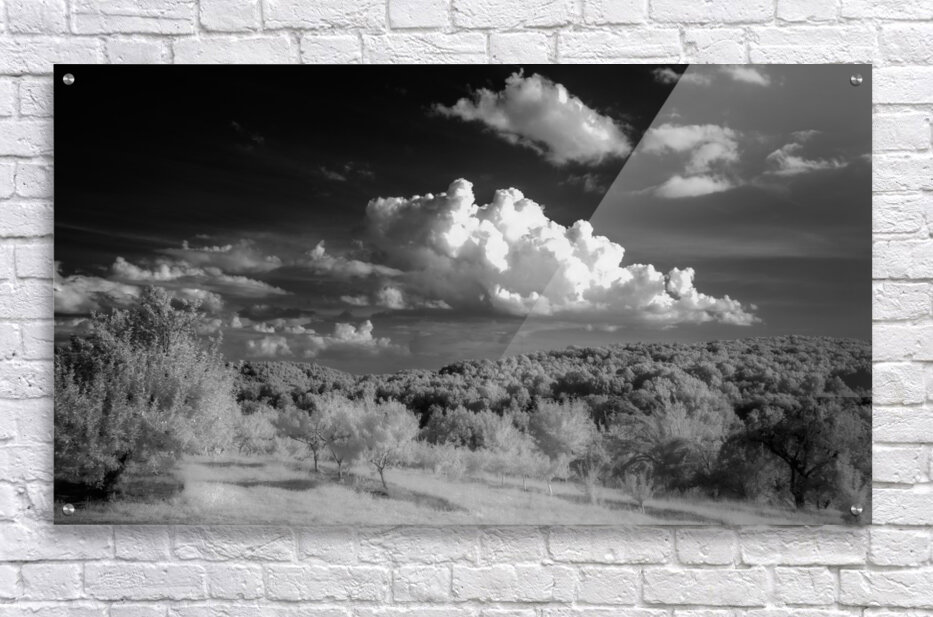 In the rolling hills of Virginia, where earth meets sky in a dramatic display of nature's grandeur, infrared photography reveals a hidden dimension of beauty. Luminous clouds dance above the ethereal landscape, while the transformed foliage below creates a dreamlike carpet of light. Part of the "Shades of Light & Shadow" collection, this image captures the timeless majesty of the Blue Ridge, where each rolling hill and billowing cloud tells a story of Appalachian splendor.