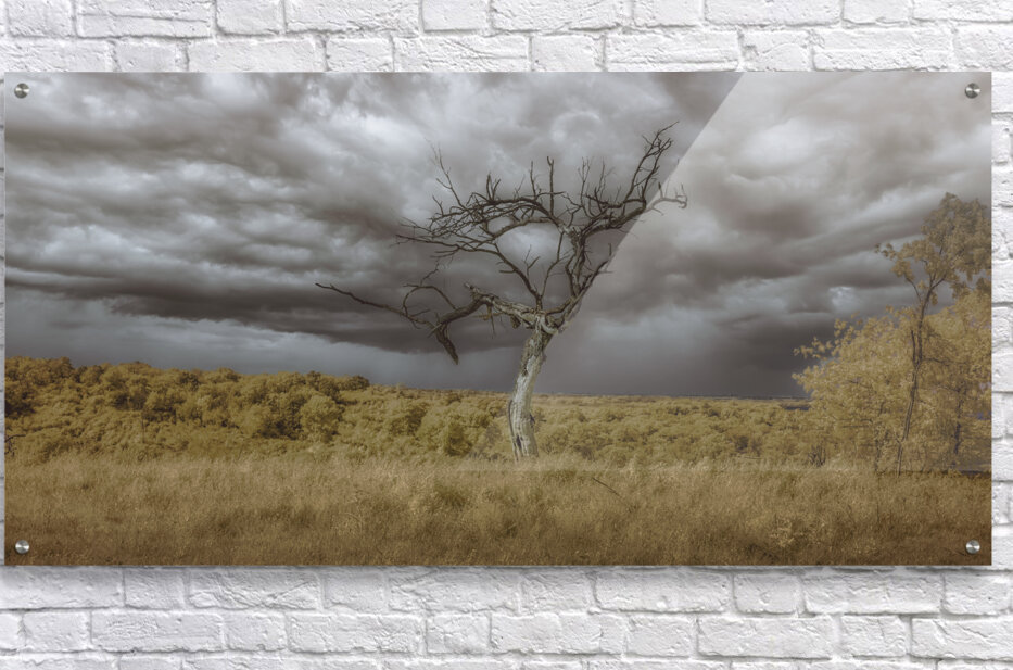 Barren Sentinel Amidst Storms Embrace  Impression sur bois