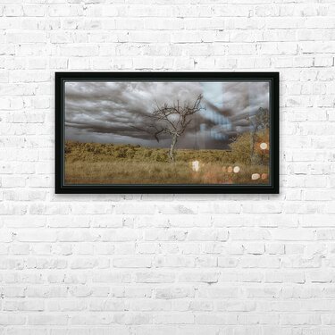 Barren Sentinel Amidst Storm's Embrace is a striking photograph that immerses the viewer in a dramatic landscape scene. Dominating the composition...[+]