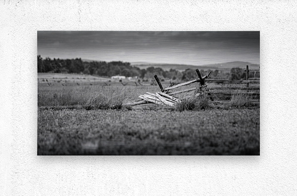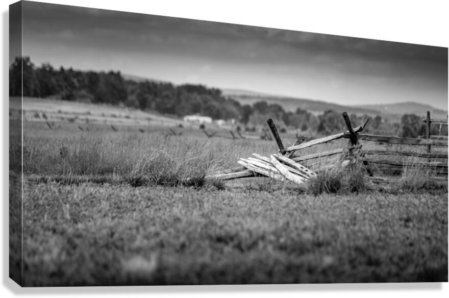 Step into a world of tranquility and decay with this captivating black and white photograph, capturing a scene in Gettysburg. A weathered wooden fence, broken and abandoned, stands as a testament to the passage of time amidst the historic landscape. Set against a vast meadow that stretches into the horizon, the scene exudes a sense of nostalgia and contemplation, inviting viewers to reflect on the echoes of history. The blurred background adds to the image's mystique, drawing the viewer in to explore the hidden depths of the rural landscape. Each weathered plank of the fence tells a story of resilience and endurance, mirroring the spirit of those who once walked these grounds during tumultuous times. Transport yourself to a place where time stands still and emotions run deep with this enigmatic artwork, offering a glimpse into Gettysburg's timeless beauty and enduring legacy.