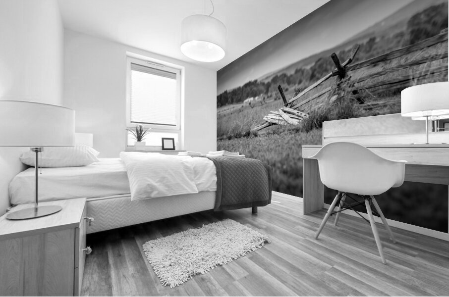 Step into a world of tranquility and decay with this captivating black and white photograph, capturing a scene in Gettysburg. A weathered wooden fence...[+]