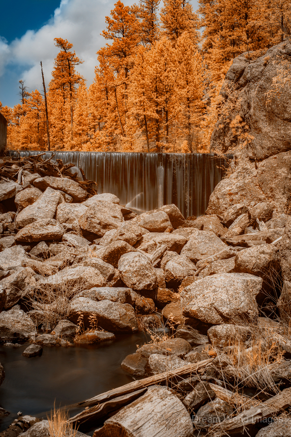 As I traversed the meandering trails of Grace Coolidge Creek in South Dakota a realm of enchantment unfolded before me through the lens of my infrared camera. The air held a mystical quality and the forest that enveloped me took on a surreal pumpkin-colored glow as if nature itself had donned an ethereal cloak. Around the bend I discovered the source of this otherworldly allure—a waterfall that descended gracefully its infrared aura resembling cascading ribbons of warmth against a backdrop of moss-covered rocks and boulders. Now bathed in pumpkin hues the forest created a mesmerizing contrast transforming the landscape into an extraordinary tapestry of infrared elegance. I framed the scene through the lens capturing the invisible spectrums unique interplay of light and shadow. The vibrant greens of the visible world were replaced by a spectrum of warm pumpkin tones adding a dreamlike quality to the already captivating surroundings. The trails took on a new life as the infrared camera unveiled hidden details and textures. The waterfalls descent became a play of infrared light creating an otherworldly ambiance that transcended the ordinary. Each droplet seemed to radiate its own warmth contributing to the overall enchantment of the moment. This outdoor escapade along Grace Coolidge Creek became a journey into the extraordinary a fusion of natures beauty and the magic of infrared imaging. The hiking adventure led me to a realm where the symphony of water and the rustle of leaves were harmonized in a surreal melody surrounded by the captivating wilderness of a pumpkin-hued forest. As I continued to explore I marveled at the unexpected beauty that the infrared spectrum had unveiled. Grace Coolidge Creek once a familiar landscape now stood transformed into a realm of infrared elegance where the subtle interplay of light and color painted a picture of natures enchantment in shades of warm pumpkin.