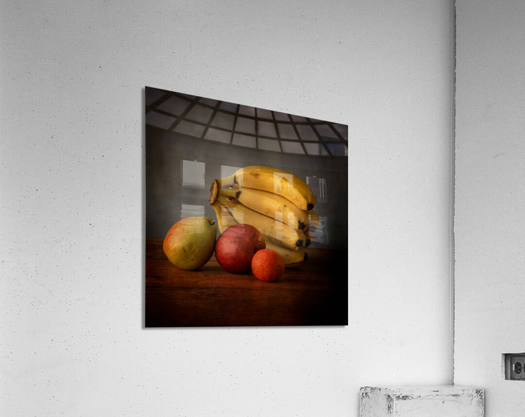 Bountiful Medley: Bananas Behind Green Pear Red Pear and Orange Impression sur bois