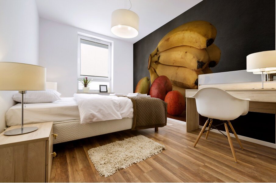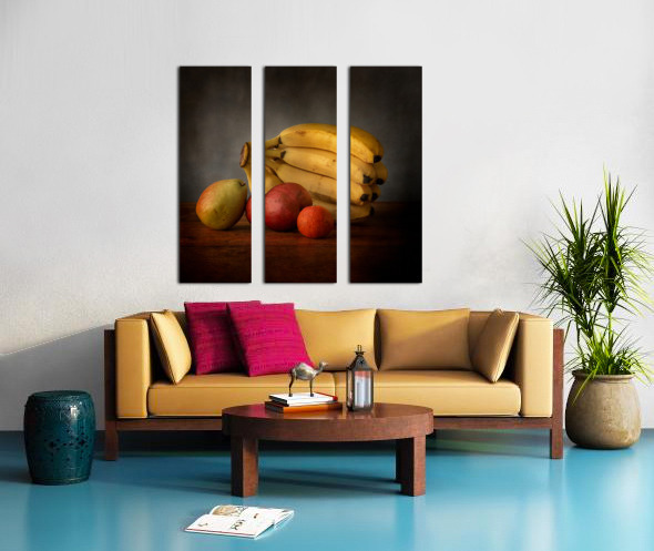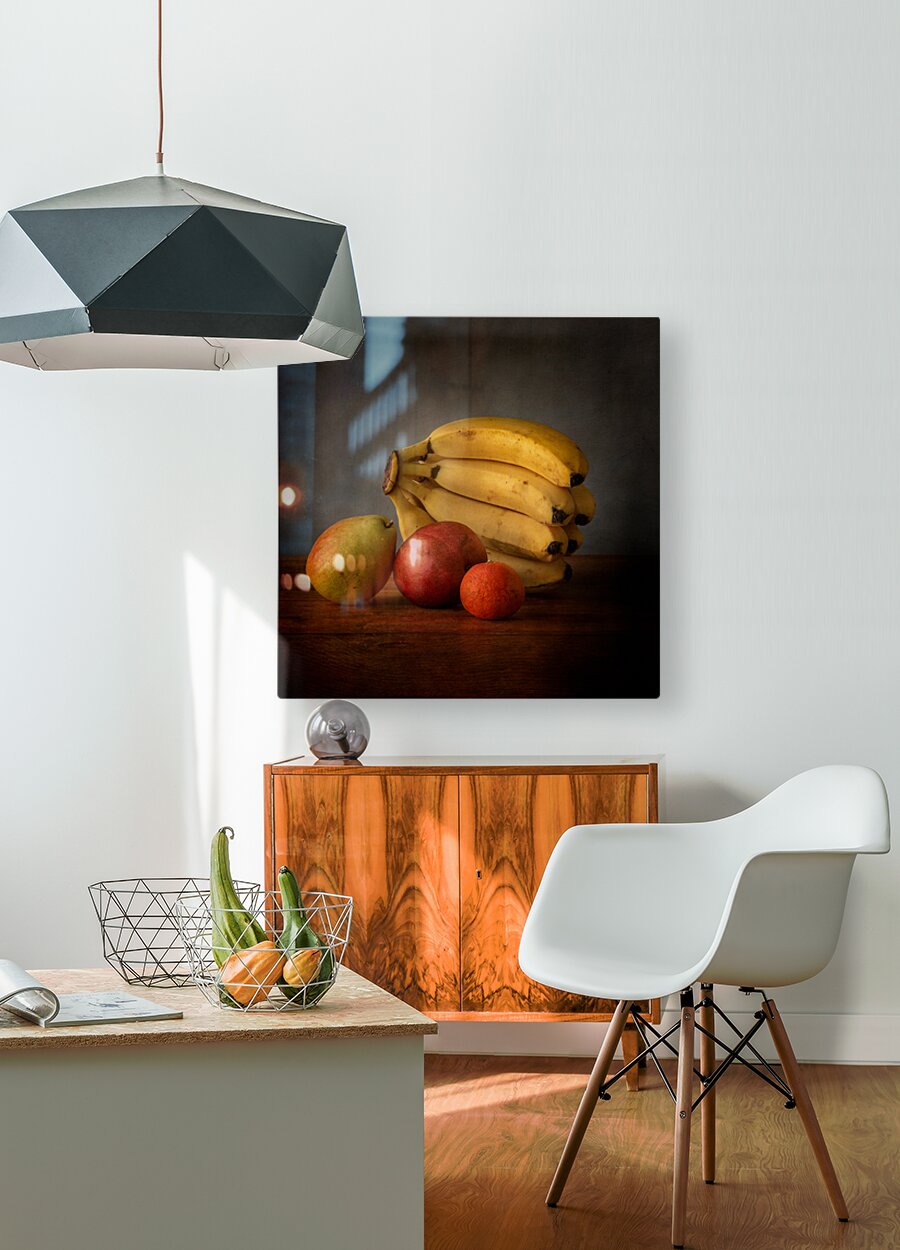 Bountiful Medley: Bananas Behind Green Pear Red Pear and Orange  Impression sur bois