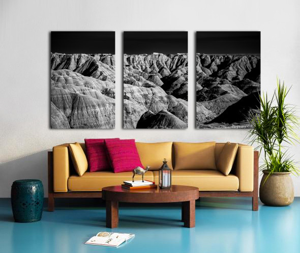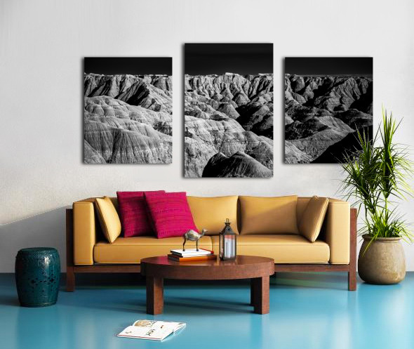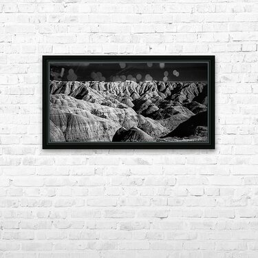 Embark on an unforgettable adventure as my wife and I journeyed through the captivating landscapes of the Badlands in South Dakota. Witness the breathtaking beauty of this rugged terrain where every shadow tells a story of mystery and intrigue. Step into a world where the shadows dance across the rugged earth revealing a landscape shrouded in enigma. The realm of sharply ridged hills and deep valleys is illuminated by a captivating play of light and shadow bringing texture and depth to every crevice. The horizon stretches endlessly beckoning the viewer to explore beyond the intricate patterns carved into the earth. In a black and white photograph that captures the essence of the lands ancient soul this artwork invites you to lose yourself in the Shadows of the Earth.