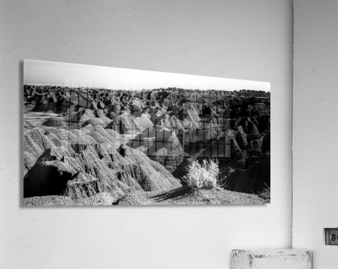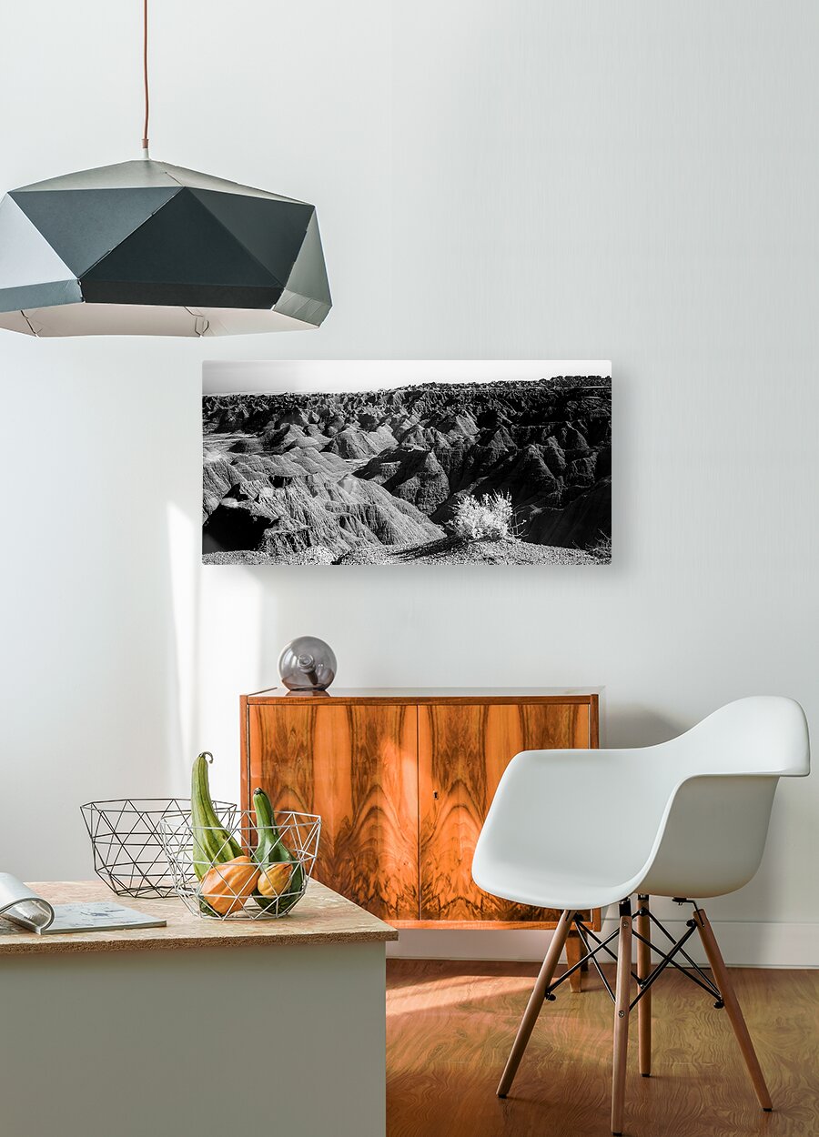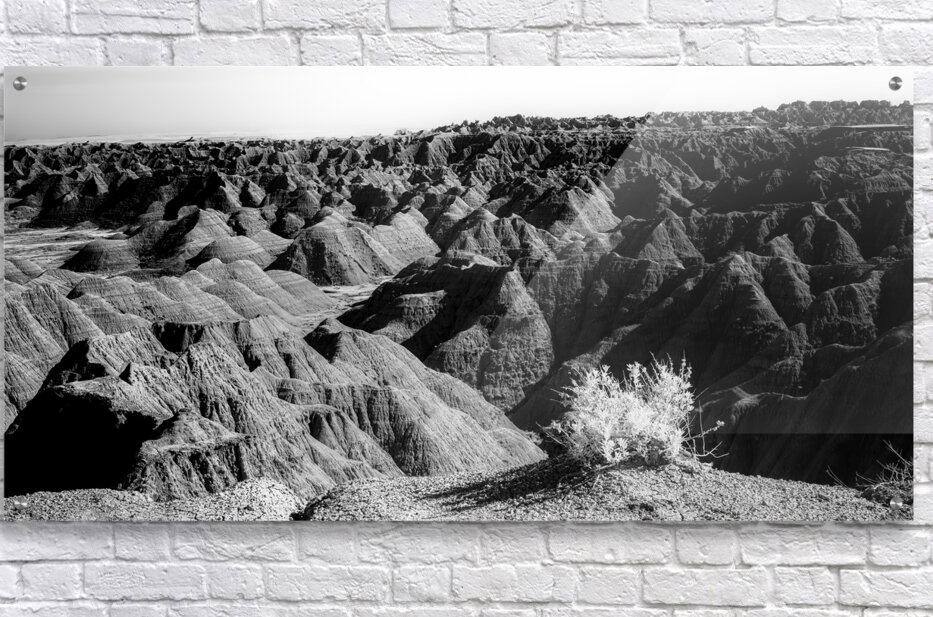 Embark on an unforgettable adventure as my wife and I journeyed through the captivating landscapes of the Badlands in South Dakota. Witness the breathtaking beauty of this rugged terrain where every shadow tells a story of mystery and intrigue. Step into a world where the shadows dance across the rugged earth revealing a landscape shrouded in enigma. The realm of sharply ridged hills and deep valleys is illuminated by a captivating play of light and shadow bringing texture and depth to every crevice. The horizon stretches endlessly beckoning the viewer to explore beyond the intricate patterns carved into the earth. In a black and white photograph that captures the essence of the lands ancient soul this artwork invites you to lose yourself in the Shadows of the Earth.
