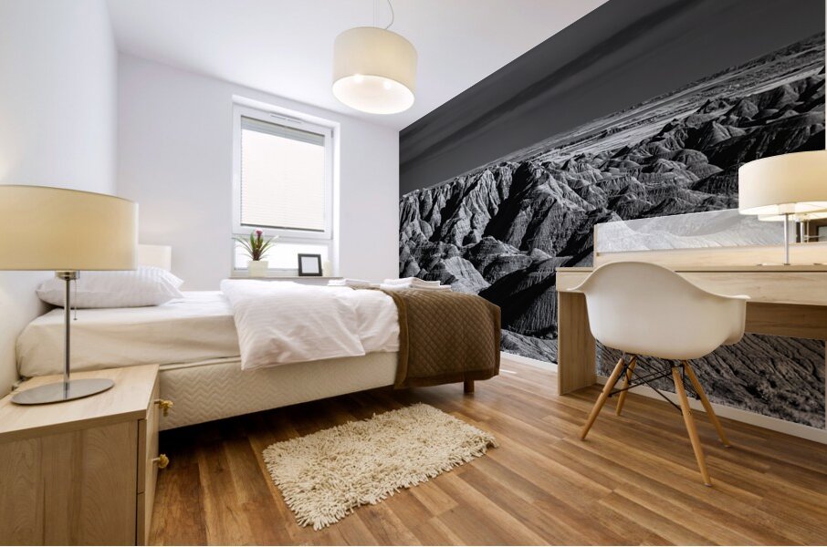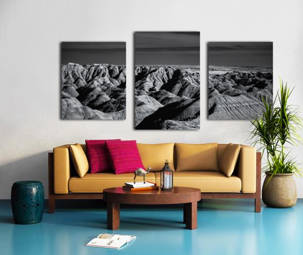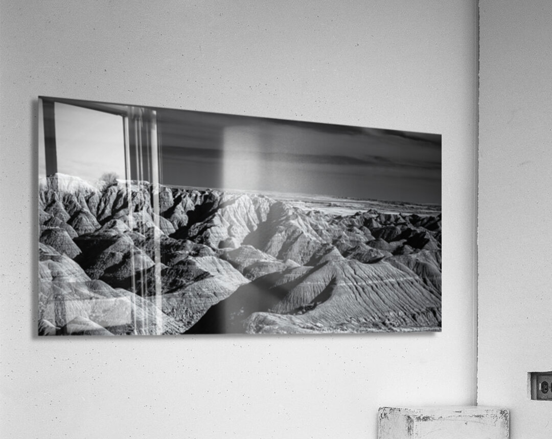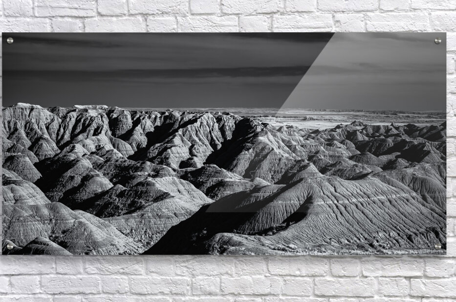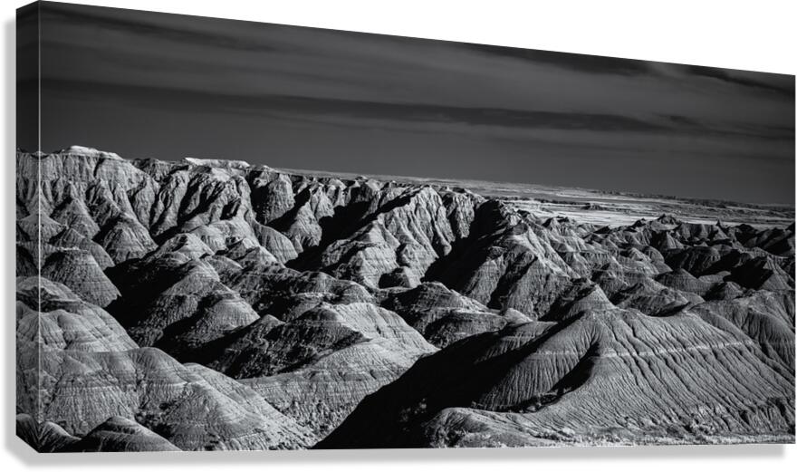 Embark on an unforgettable adventure as my wife and I journeyed through the captivating landscapes of the Badlands in South Dakota. Witness the breathtaking beauty of this rugged terrain where every shadow tells a story of mystery and intrigue. Step into a world where the shadows dance across the rugged earth revealing a landscape shrouded in enigma. The realm of sharply ridged hills and deep valleys is illuminated by a captivating play of light and shadow bringing texture and depth to every crevice. The horizon stretches endlessly beckoning the viewer to explore beyond the intricate patterns carved into the earth. In a black and white photograph that captures the essence of the lands ancient soul this artwork invites you to lose yourself in the Shadows of the Earth.
