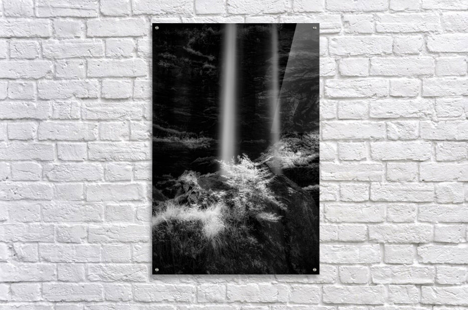Welcome to Shadows of Stillness a captivating black and white photograph capturing the serene beauty of Toccoa Falls in Georgia. Marvel at the cascading waterfall framed by a dark cliff face creating a mesmerizing interplay of light and shadow. As you immerse yourself in this scene the contrasting textures of rock and foliage illuminated by subtle light invite contemplation and reflection. Experience the tranquility and wonder of natures mysteries as you see this stunning artwork. Shadows of Stillness transports you to a realm where time stands still where beauty is found in the simplest moments. Its a testament to the artists skill in capturing the essence of stillness and beauty in the natural world.