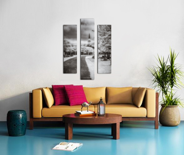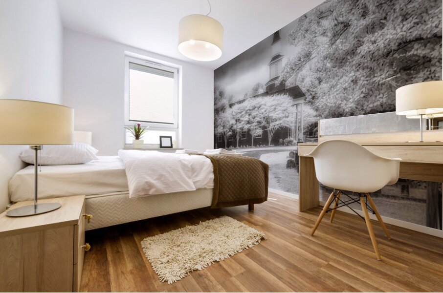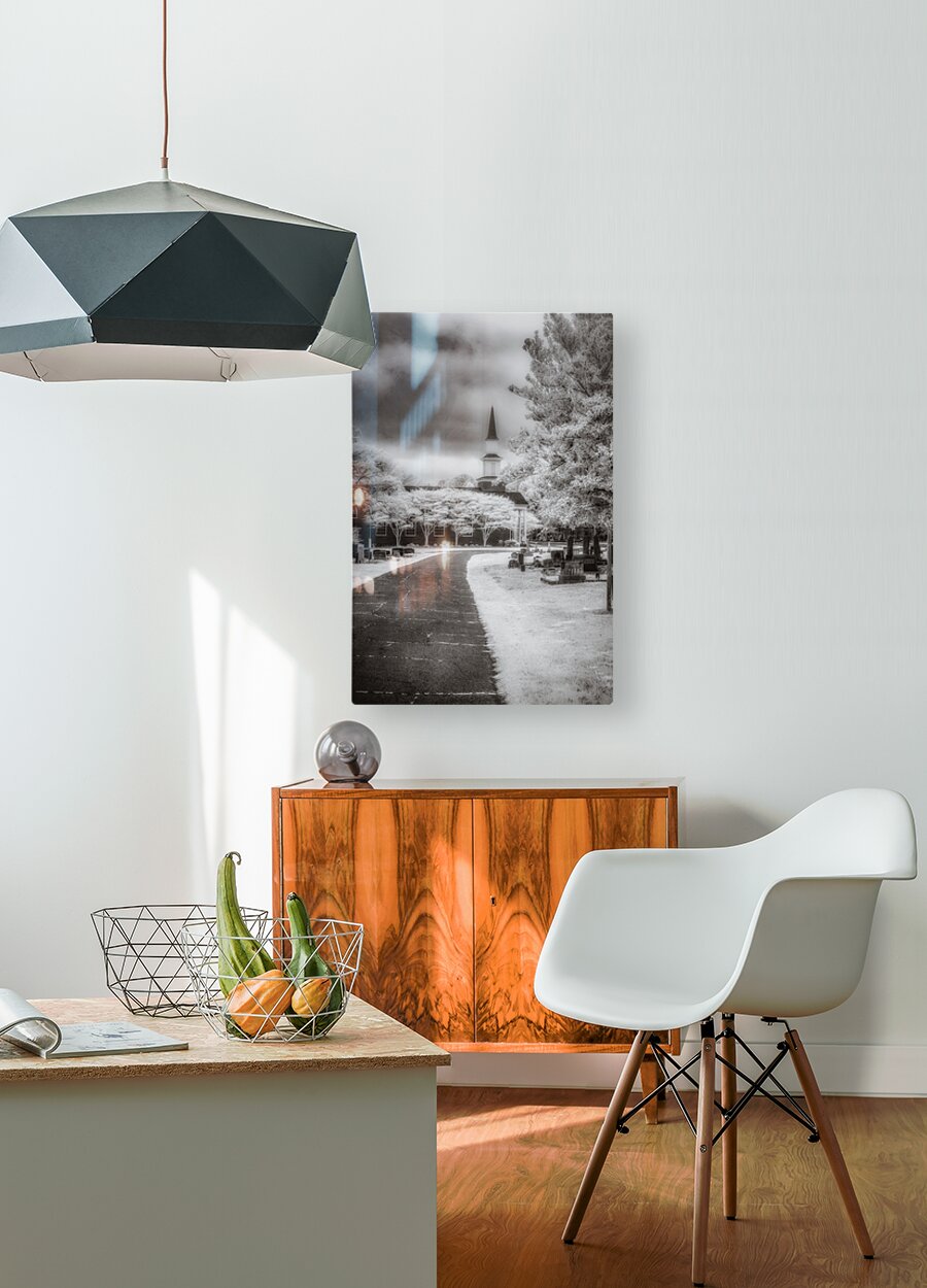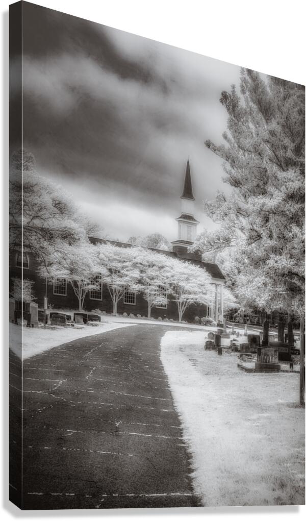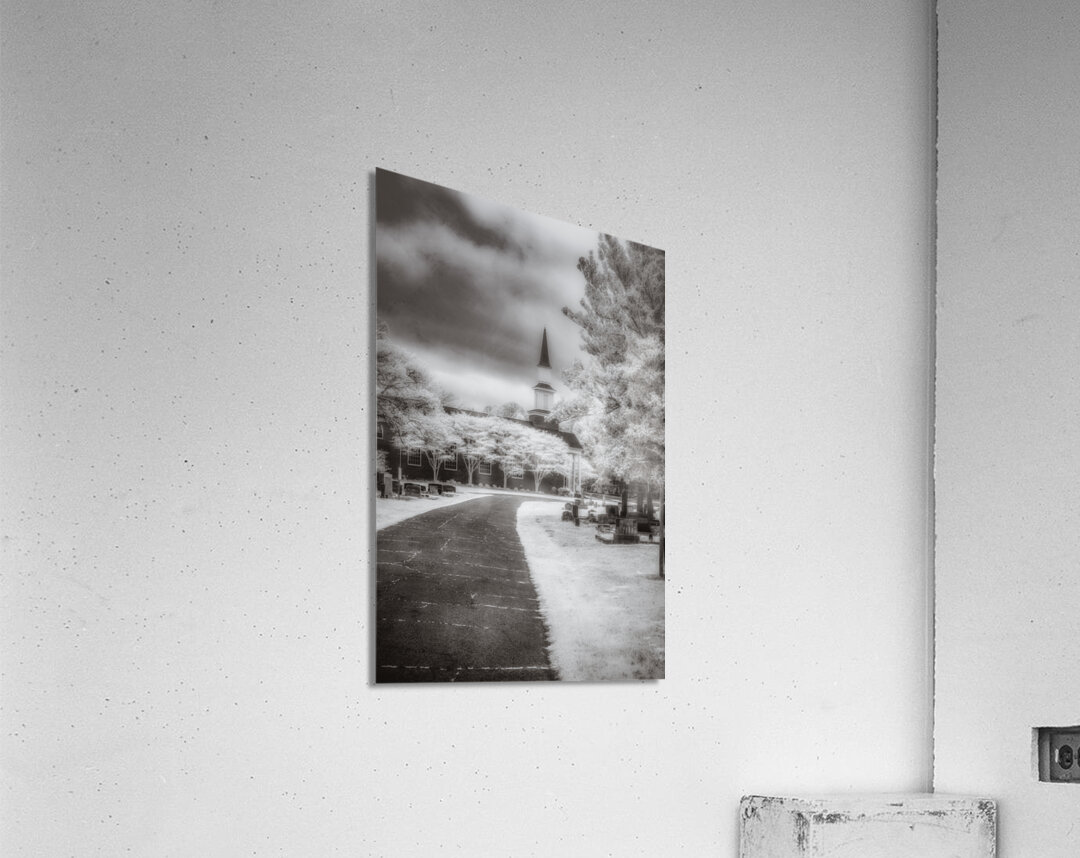 Step into a world of enigmatic beauty and spiritual splendor with my latest artwork Spiritual Splendor - A Journey with Dramatic Peace. This monochromatic infrared-style depiction offers a profound representation of lifes journey from birth to death. At the scenes forefront stands a majestic church with a towering steeple symbolizing the ultimate destination at the end of lifes winding road. A journey of contemplation and reflection lies along the path flanked by leafless trees illuminated by ethereal light. As the path leads towards the church it passes through a cemetery adorned with weathered gravestones reminding us of the lives once lived and the memories they leave behind. Above dark and moody clouds fill the sky adding a dramatic backdrop to the tranquil scene below. Inspired by the inner yearning for peace and solace this artwork captures a timeless moment where the spiritual realm meets the earthly. Using infrared techniques the scene is infused with an otherworldly quality inviting viewers to unravel the mysteries of existence. Join me on this journey of dramatic peace as we embrace the enigmatic beauty of Spiritual Splendor - A Journey with Dramatic Peace. Let us be transported to a place where serenity and contemplation reign and the soul finds solace in the depths of the unknown.