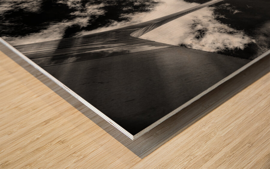 Venture into the surreal realm of this black and white infrared photograph where reality twists under the spell of an ethereal lens. Behold a towering monument that pierces the heavens its sleek form rising with an almost otherworldly grace. Each vertical line exudes power urging the onlookers gaze ever skyward into a tapestry woven from scattered imposing clouds. The monument stark and smooth in its vertical ascent stands as a testament to human ambition and the mysteries of the cosmos. In this spectral dance of light and shadow time feels elusive suspended. The dynamic play between the monument and the sky incites a deep sense of contemplation and wonder. Shadows whisper secrets while the illuminated facets of the structure refract an ancient energy that seems from both the past and future. Its in this interplay that the photograph finds its voice—a haunting yet harmonious symphony where every cloud and every crevice tells a fragment of a grand untold narrative. This image all at once serene and imposing invites the viewer into a promenade of reflections and daydreams caught in the ghostly glow of infrared. Lose yourself in its enigmatic allure and let your mind wander through the infinite possibilities etched within this vertical symphony.