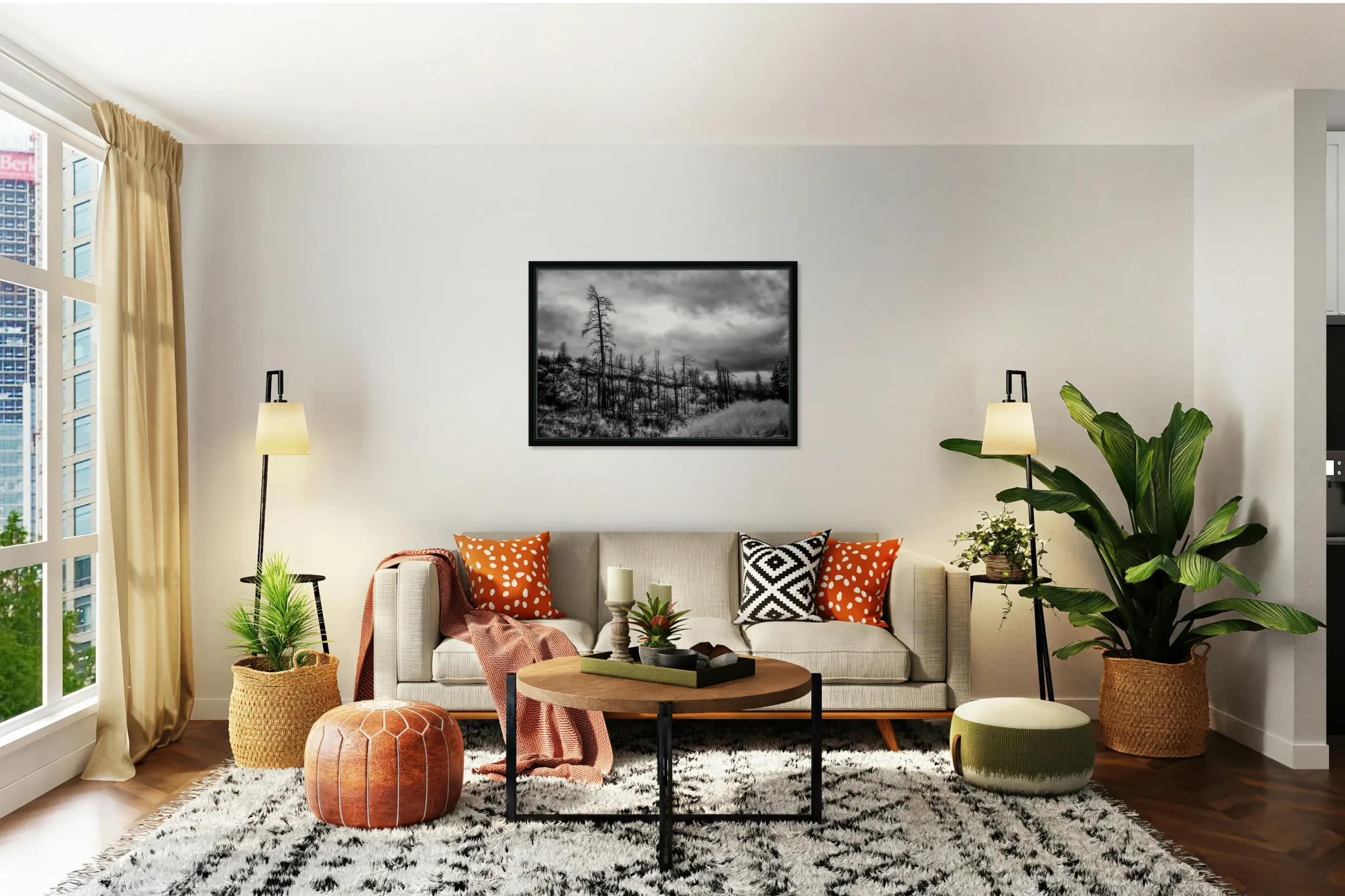 Behold a realm where time seems both suspended and eternal as the remnants of a once-vibrant forest stand in solemn vigil. After the Fires Whisper cap