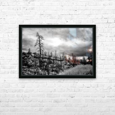 Behold a realm where time seems both suspended and eternal as the remnants of a once-vibrant forest stand in solemn vigil. After the Fires Whisper cap