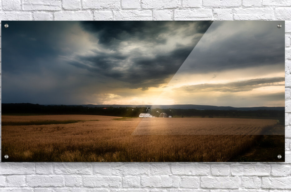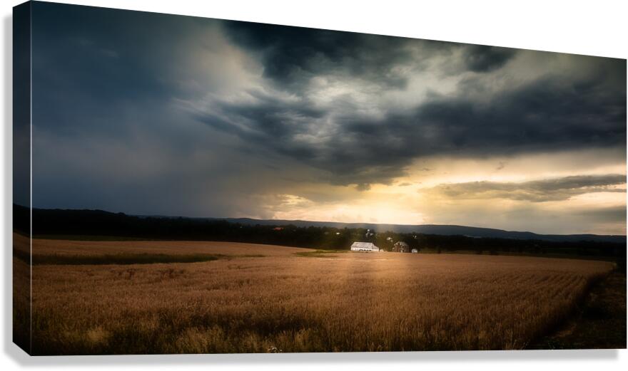 This farm is on the edge of the National Military Park in Gettysburg It was late in June and a storm was heading toward us. The suns rays shining on a farm with wheat in the foreground caught my eye. Hope you like it.