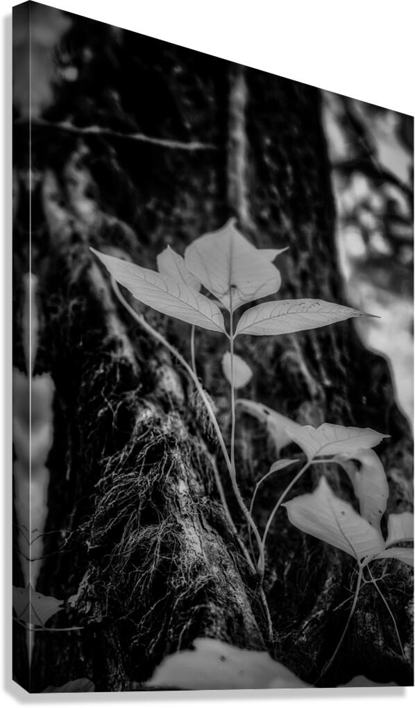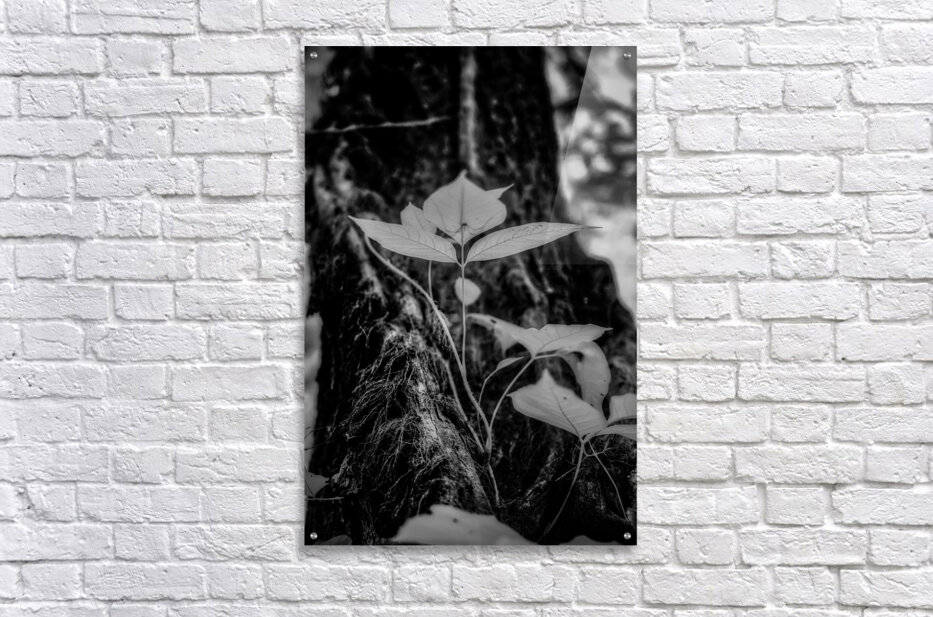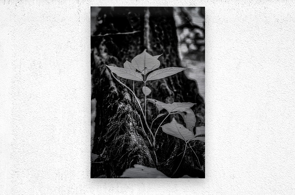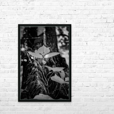 This intimate black and white photograph captures the paradoxical beauty of poison ivy in its natural habitat. The composition focuses on the distinct...[+]