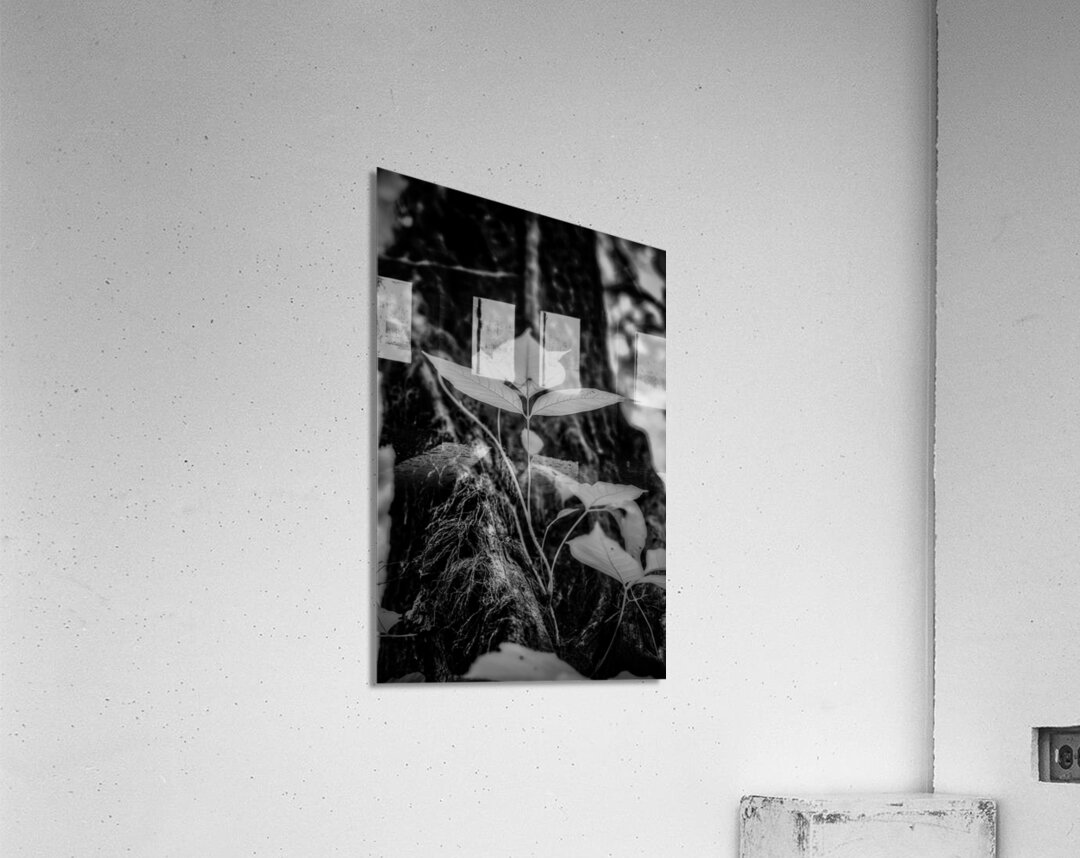 This intimate black and white photograph captures the paradoxical beauty of poison ivy in its natural habitat. The composition focuses on the distinctive three-leafed structure, rendered in exquisite detail against a dark, textured background. The monochromatic treatment reveals subtle gradations and delicate venation patterns within the leaves, transforming this typically feared plant into an object of artistic appreciation. The image belongs in the "Shades of Light and Shadow" collection, where it exemplifies the beauty found in nature's warnings. The stark contrast and careful attention to detail create a compelling study of form and texture that invites viewers to see this common plant in a new light.
