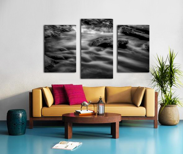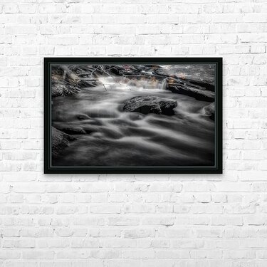 Immerse yourself in the ethereal beauty of Flowing Elegance a spellbinding black and white photograph capturing the graceful dance of water as it cascades and swirls with mesmerizing fluidity. The long exposure technique used in this piece brings a sense of movement and tranquility transforming the water into a delicate flowing veil that seems to transcend time itself. Solid rocks stand as silent witnesses their sharp edges contrasting starkly against the soft serene flow of water. This captivating artwork invites you to lose yourself in the interplay of light and shadow in the intricate patterns and textures that unfold before your eyes. Let the timeless beauty of nature envelop you in its embrace and experience a moment of pure unadulterated serenity.
