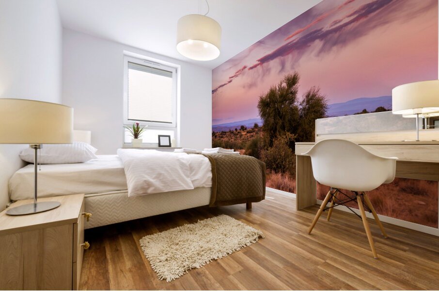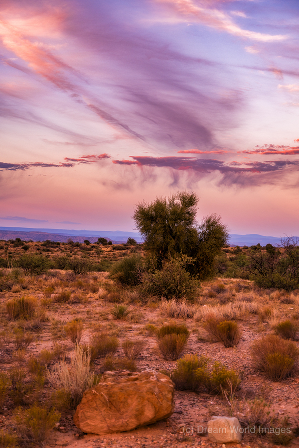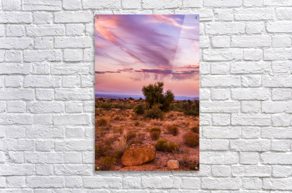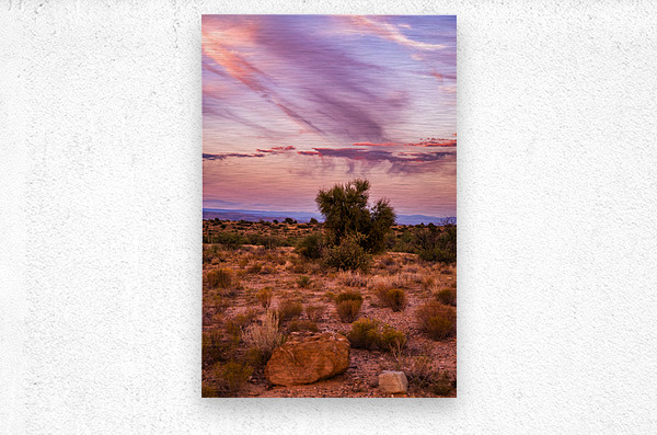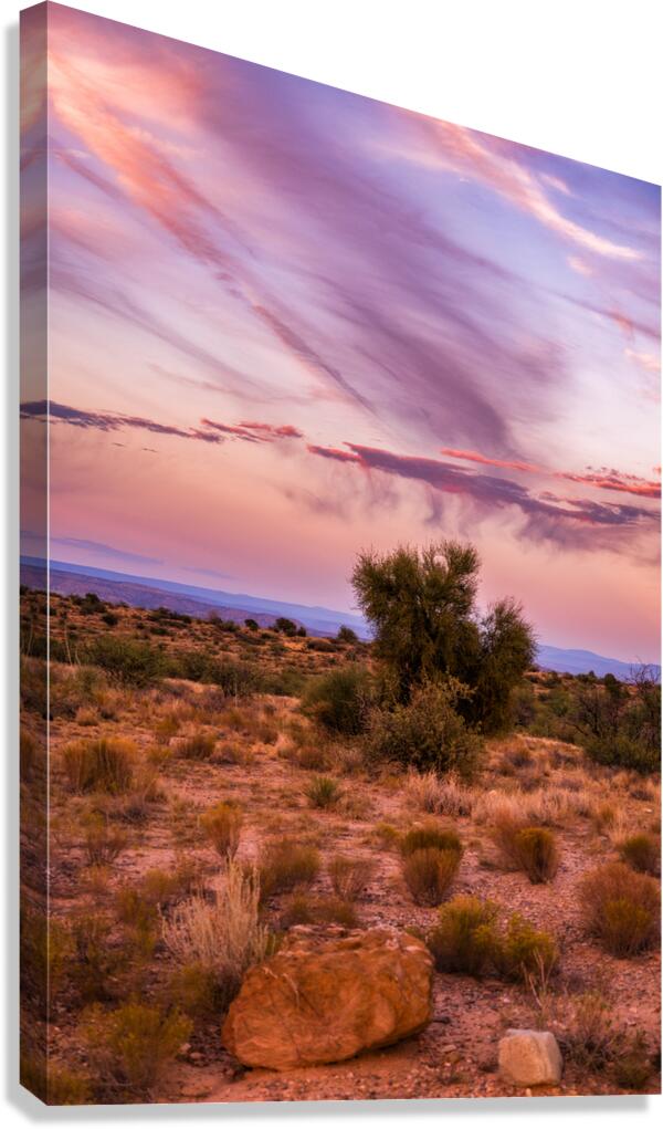 Dive into the elusive allure of Whispers of a Painted Sky an artwork that captures the quiet majesty of a desert at sunset. My wife and I were coming back from the store when the sky started to light up with incredible colors so we pulled over onto a dirt road to capture this moment. This ethereal scene unfolds around a solitary tree standing steadfast amidst the vast expanse of sparse vegetation. As the sun dipped below the horizon the sky transformed into a vivid tapestry painted with an array of colors—soft pinks and purples transitioning into deep blues blending seamlessly with the wispy clouds that glided like whispers through the sky. The foreground rich with warm earth tones creates a sense of ancient permanence grounding the image in the timeless beauty of the desert. These tones harmonize perfectly with the skys pastel palette balancing the connection between the earth and heavens. The scene breathes tranquility inviting you to pause and take in the quiet symphony of colors. Every element of this composition is infused with a quiet story urging the observer to linger and seek meaning in the silence. The enchanting presence of this piece offers a glimpse into a world where natures whispers are vividly heard capturing a fleeting yet profound moment of serenity.