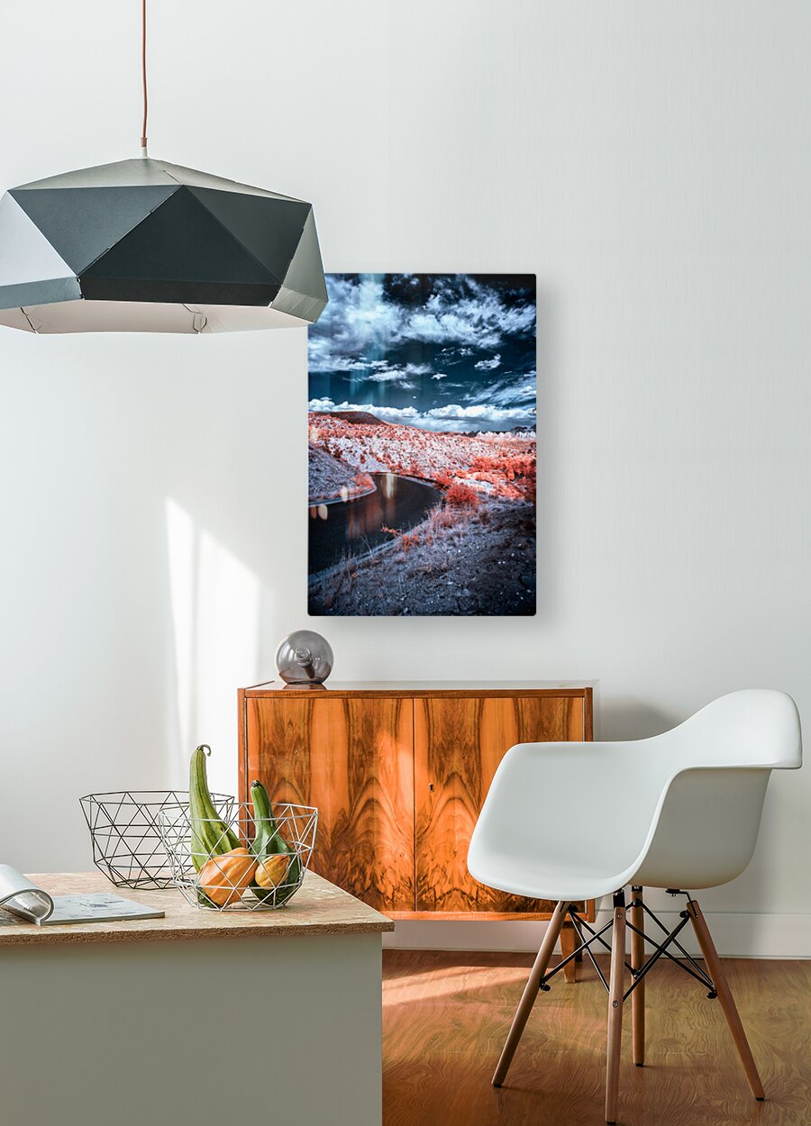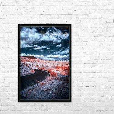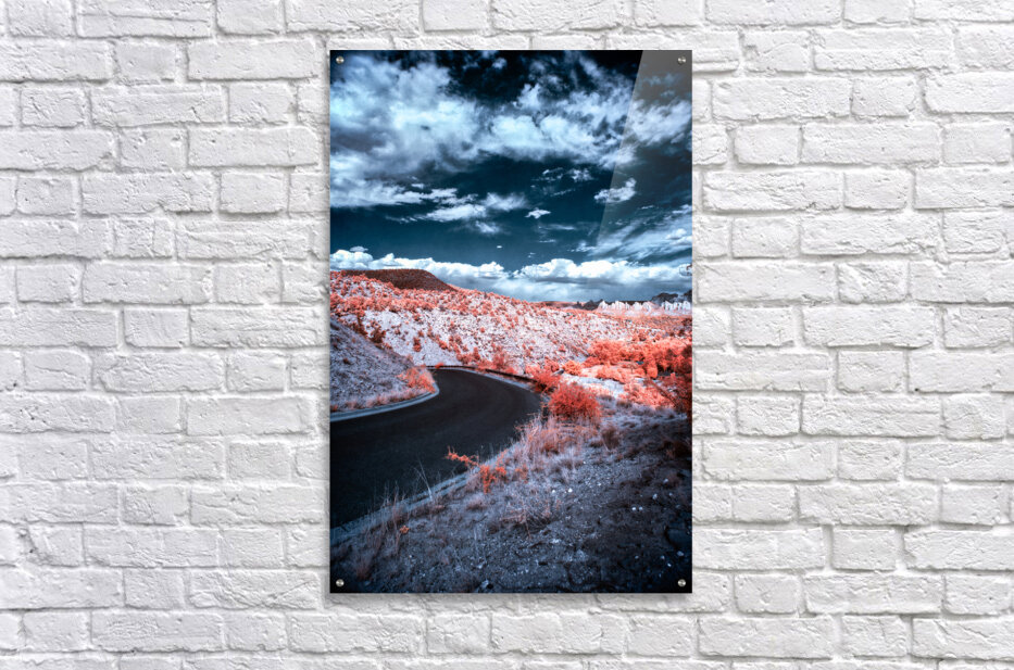 Embark on a journey through an otherworldly realm with Dreamscape Pathway in Surreal Hues a mesmerizing photographic composition that transcends the boundaries of reality. Within this enchanting vision a winding road meanders through an ethereal landscape inviting the beholder to explore its myriad mysteries. The landscape itself is adorned with undulating hills bathed in vibrant shades of orange and pink creating an awe-inspiring tapestry that defies conventional perception. Above this celestial terrain the sky unfolds in a deep dramatic blue punctuated by the dance of textured clouds. This harmonious interplay of colors and textures conjures a sense of wonder and intrigue imbuing the scene with a dreamlike quality that hovers on the brink of the surreal. As one gazes into this enigmatic vista a mystical pathway unfurls leading the imagination toward uncharted territories of the mind and spirit. This striking work of art captures not only a moment in time but an invitation to journey into the realm of dreams where the familiar meets the fantastical. It is a visual odyssey that beckons the soul to wander and the senses to awaken echoing a universal longing for discovery and the allure of the unknown.