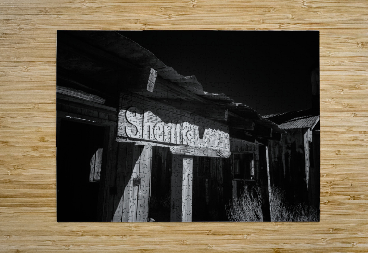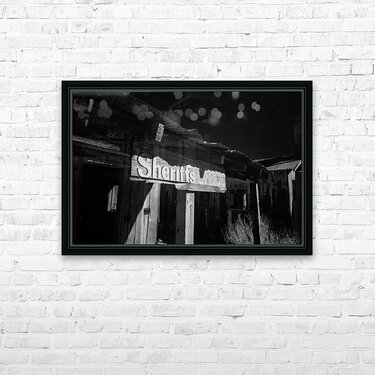 Shadows in Timber is a captivating black and white photograph that transports viewers to an old western setting. The image focuses on a vintage Sherif...[+]