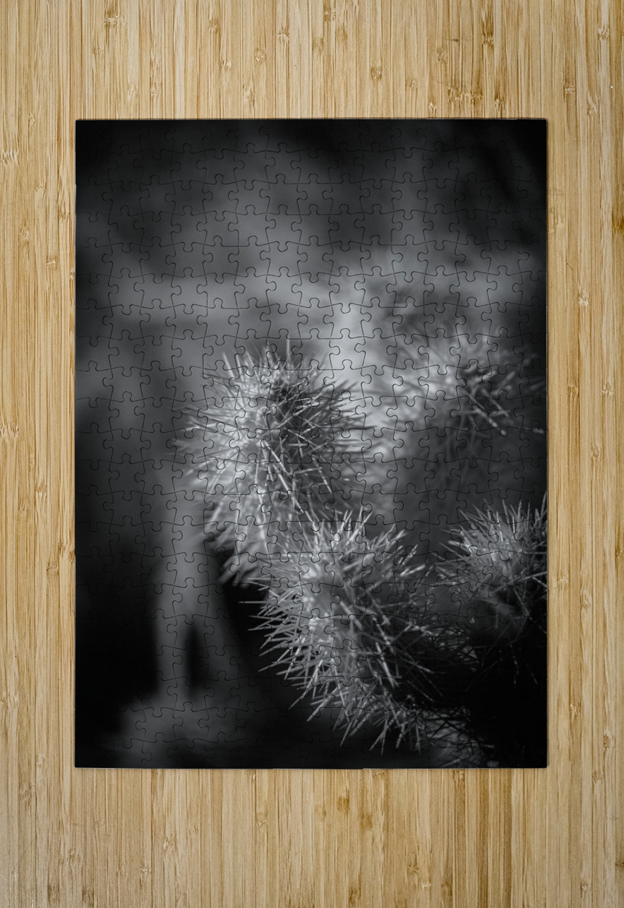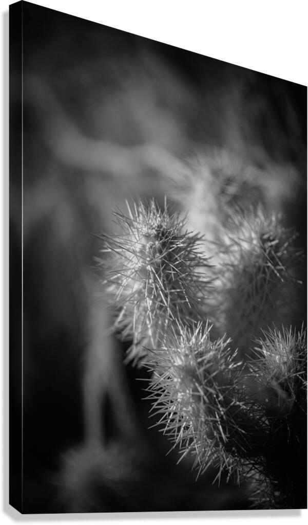 In the mesmerizing piece, "Textures of Thorn and Light," one is transported into a realm where nature's enigmatic beauty unfolds in monochrome splendor. The composition is a striking black and white photograph that captures the very soul of a cactus, revealing the intricate patterns etched by the passage of time and the elements. Here, the spines stand like guardians of an ancient secret, their razor-sharp definition enhanced by a masterful play of shadow and light. Each spine is a whisper of mystery, a storyteller in its own right, inviting the viewer to explore the hidden depths beneath its surface.