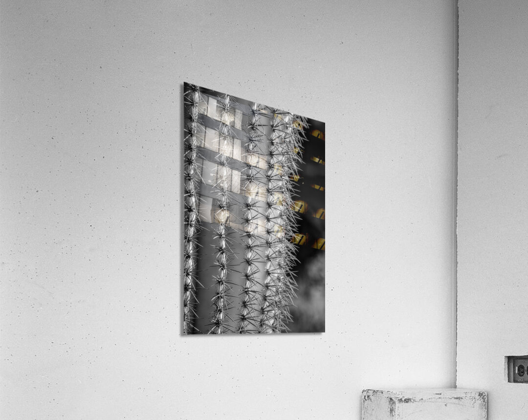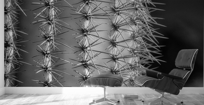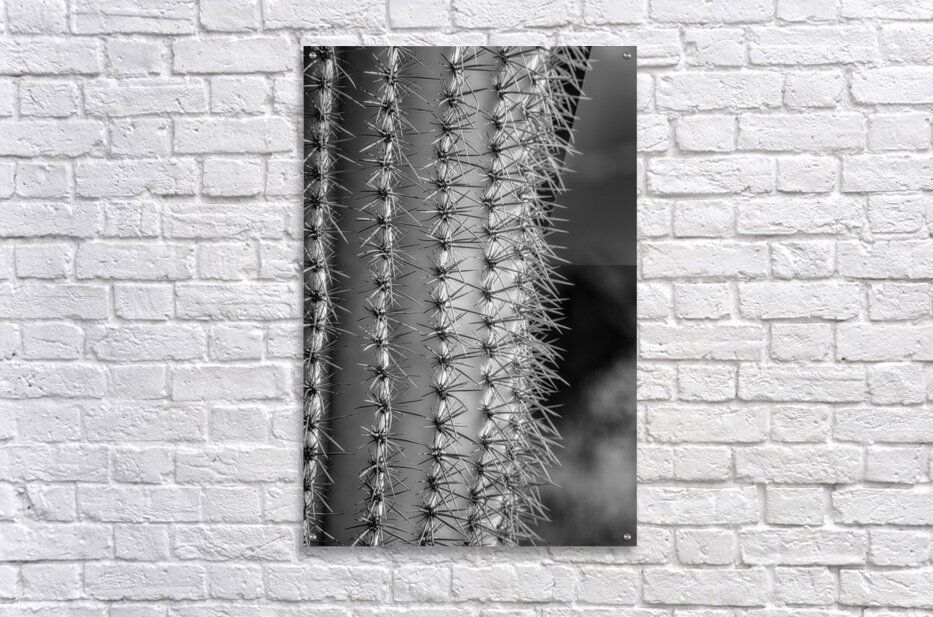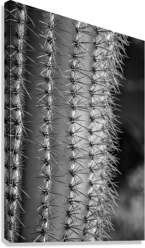 Prickly Pathway invites the viewer to traverse an enigmatic landscape where natures mysteries unfold in stark monochrome. Through this photographic odyssey the textured surface of a cactus emerges as a labyrinthine world revealing an intricate dance of light and shadow. Each sharp spine meticulously captured forms a harmonious yet fierce symphony of contrasts underscoring the cactuss timeless resilience and elegance. In this visual journey the observer is drawn into a realm of geometric wonder where ridged columns rise like ancient sentinels guarding secrets of desert solitude. The black and white rendering strips away distraction distilling the essence of this natural marvel into an immersive exploration of its rhythmic patterns. Delve into the profound simplicity of nature’s architecture as the sinuous forms whisper of an untamed beauty that transcends the boundaries of the known world. Prickly Pathway beckons with its mystic allure inviting contemplation and introspection and offering a glimpse into the untold elegance hidden within the familiar.