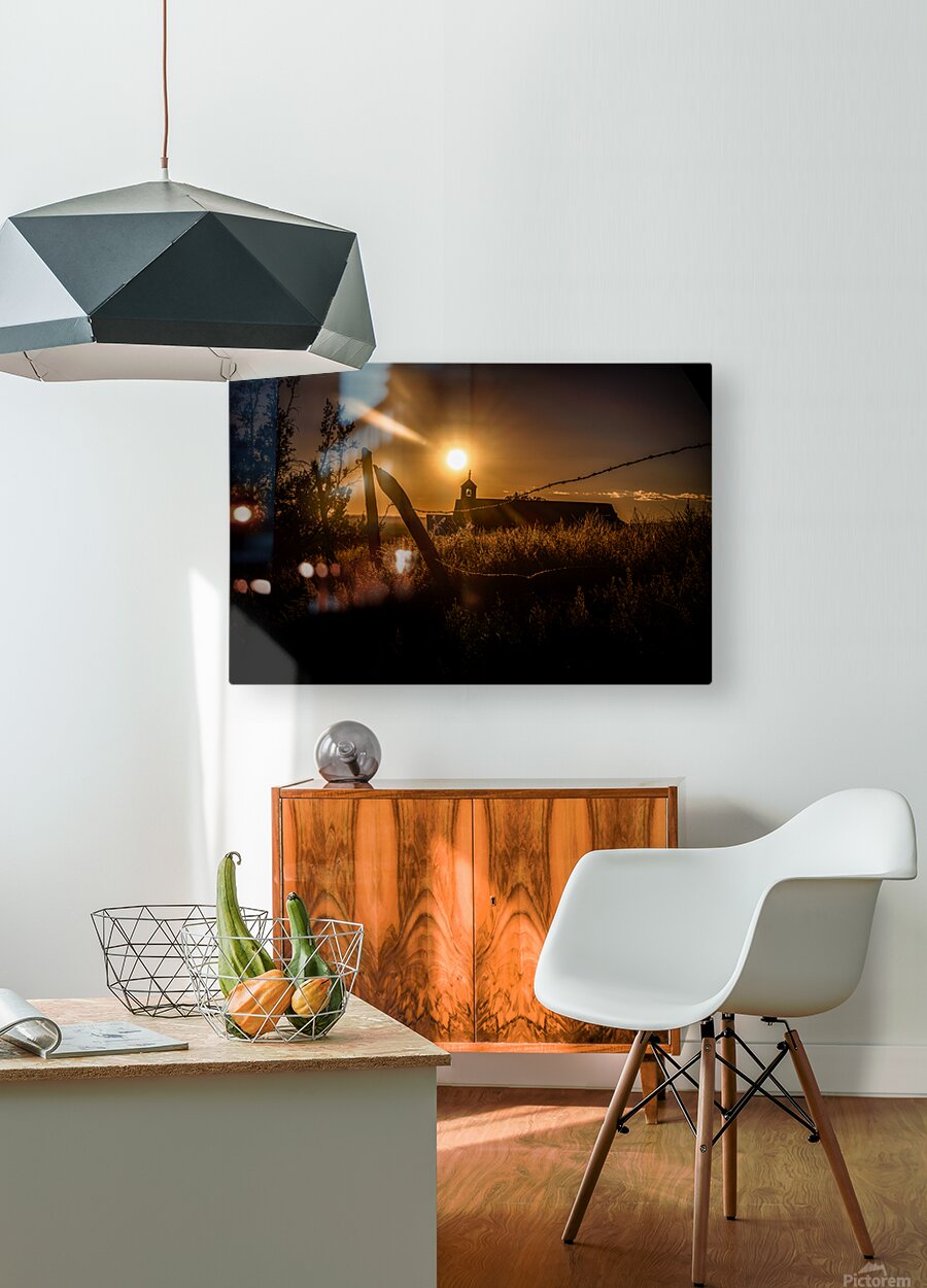 One afternoon my wife and I were on a simple errand to the San Cristobal post office a drive wed taken countless times before. But on the way back something caught our eye—the San Francisco de Asís Catholic Mission Church in Taos. The lighting was absolutely stunning and we knew we had to stop. The sun was low in the sky casting a warm golden glow that felt almost otherworldly as if the heavens themselves were breathing life into the landscape. In this captivating photograph I captured theres a mesmerizing dance between light and shadow painting an enchanting scene. The sun either rising or setting draped the church and the surroundings in a soft ethereal light that illuminated even the quietest corners. A rustic fence is silhouetted against this glowing sky its simple elegant lines evoking a sense of timelessness. To the right the humble church building with its small tower and cross stands subtly yet resolutely. Its form blends seamlessly with the mystical ambiance bringing to life centuries of whispered prayers and quiet moments of reflection. In the foreground the shadowy grasses and untamed vegetation are darkened by the backlit glow of the sun creating a stark yet beautiful contrast. The interplay of light and darkness only deepens the atmosphere of tranquility and solitude. Standing there it felt like a sacred moment where nature and human craftsmanship converged harmoniously and we were fortunate to witness it. The composition captures a serene balance between the natural world and the architecture of the church. The scene is filled with a profound calm urging anyone who looks at it to lose themselves in the beauty of this quiet landscape. In that fleeting moment earth and sky light and shadow all came together to create a space where the soul could reflect on the wonders that exist just beyond the ordinary.