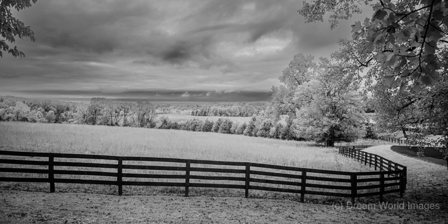 Where pastoral peace meets dramatic skies a simple fence becomes natures frame. In black and white infrared every cloud tells a story every blade of g...[+]