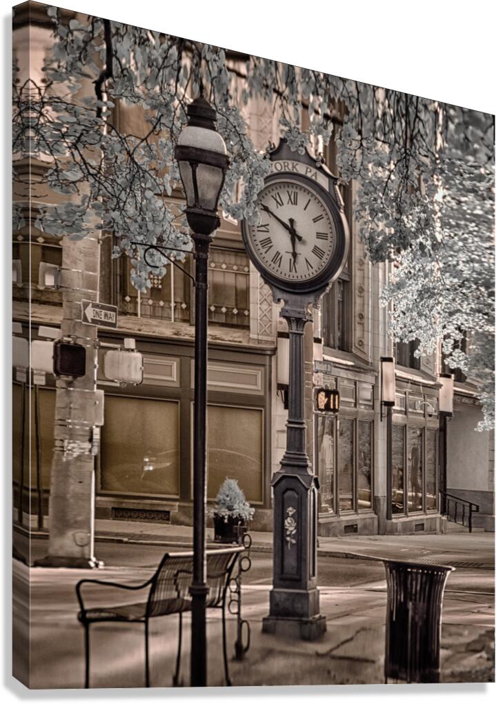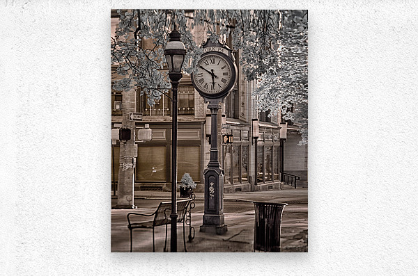 Embarking on a mesmerizing photowalk through the heart of York Pennsylvania I wielded my trusty original infrared-converted camera eager to capture the towns essence in a different light. The resulting monochrome masterpiece far surpassing the mundane title Along the River unveils a captivating scene that goes beyond the ordinary. In this striking image the focus shifts to the iconic town clock a symbol of Yorks heartbeat. The black and white infrared tones transform the scene into an ethereal composition adding a layer of mystery to the urban landscape. Here the town clock stands frozen at 5:50 a poignant moment captured in the timeless dance of shadows and highlights. As I explored the cityscape with my daughter by my side we encountered the captivating sight of the stilled clock. The shallow depth of field highlights the intricate details of the clock face emphasizing the arresting image of time suspended in perpetual evening. This visual narrative titled Frozen in Time invites you to join our exploration of Yorks urban beauty through the lens of infrared photography. Traverse the cobblestone streets embrace the poetic stillness of the clock and revel in the nuanced contrasts that bring this iconic landmark to life. In the company of my daughter we discovered a unique blend of nostalgia and contemporary charm all preserved in the captivating allure of an infrared photograph.