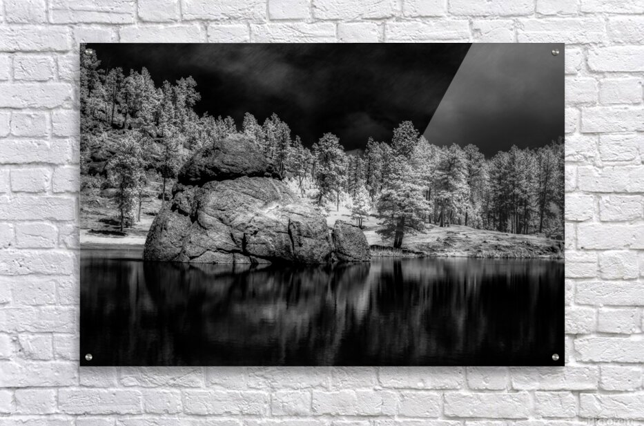 On a captivating afternoon I embarked on an expedition to Sylvan Lake nestled within the serene embrace of Custer State Park South Dakota. Armed with my camera I ventured to immortalize this natural wonders enigmatic allure. Amidst the tranquil waters of Sylvan Lake I encountered a spectacle that captured my gaze: a colossal rock protruding majestically from the depths below. Through the lens of my camera bathed in true black and white invisible light the scene took on an ethereal quality shrouded in mystery and intrigue. The monochrome palette lent an air of timeless elegance to the landscape accentuating every contour and crevice of the imposing rock formation. Against the lakes still surface the rock stood as a silent sentinel a testament to the enduring power of natures handiwork. As I captured the scene with a click of my camera I was awestruck by the stark beauty that unfolded before me. The infrared imagery revealed a world unseen to the naked eye a realm of subtle contrasts and hidden depths waiting to be explored. In that fleeting moment amidst the quietude of Sylvan Lake I felt a profound sense of connection to the natural world. The monochrome marvel of the rock bathed in invisible light served as a poignant reminder of the timeless beauty that surrounds us waiting to be discovered and cherished.