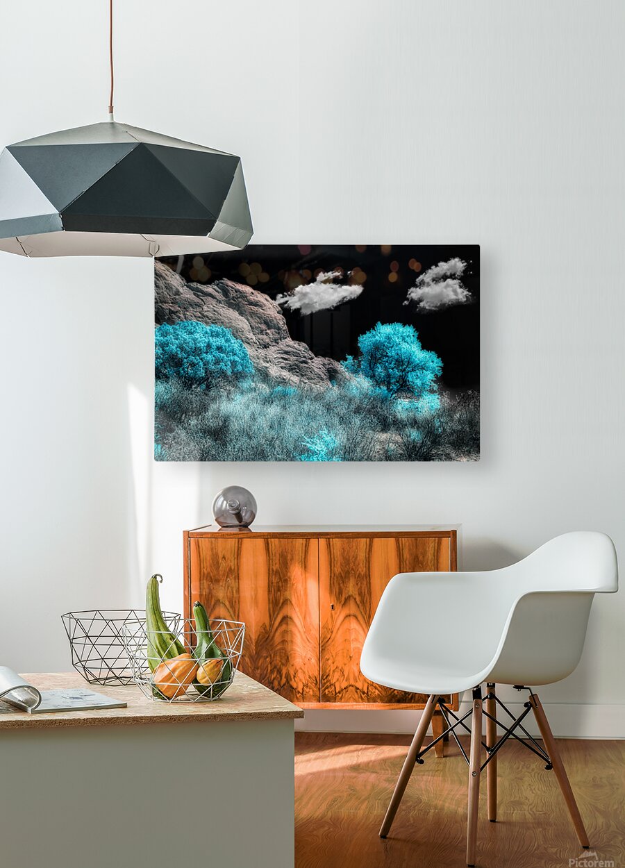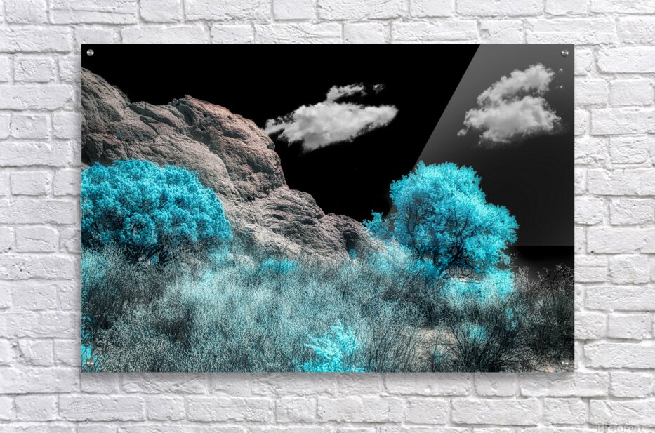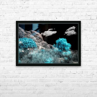 Nestled within the awe-inspiring landscapes of Colorado Springs lies the renowned Garden of the Gods a sanctuary of natural beauty and wonder. As I traversed the rugged trails surrounded by towering rock formations and ancient trees I encountered a scene of breathtaking magnificence—a majestic rock wall stretching towards the heavens set against a stark black sky. Captured in stunning infrared with a mesmerizing blue hue the trees lining the trail added an ethereal touch to the landscape casting shadows that danced upon the earth. Against this backdrop the towering rock wall stood as a testament to natures raw power and grandeur. Each step along the trail brought me closer to this imposing geological wonder filling me with awe and reverence for the ancient forces that shaped it. As I gazed up at the sheer cliffs rising majestically overhead I felt a profound connection to the land and its storied history. Infrared photography allowed me to capture the scene in a way that transcended traditional imagery revealing the hidden beauty and mystique of Garden of the Gods. The stark contrast between the darkened sky and the vibrant blue trees added a sense of drama and intrigue to the photograph inviting viewers to immerse themselves in the captivating splendor of this natural marvel. From the towering rock formations to the ancient trees that line the trails Garden of the Gods is a place of unparalleled wonder and enchantment. Whether youre a seasoned hiker a nature enthusiast or simply seeking solace in the beauty of the outdoors the trails of Garden of the Gods offer a truly unforgettable experience.